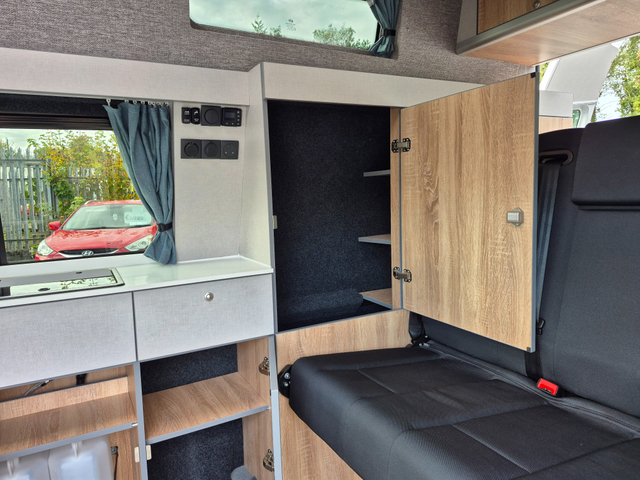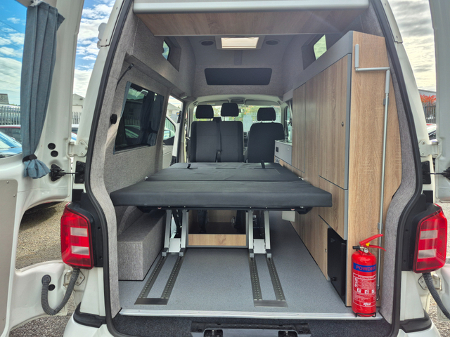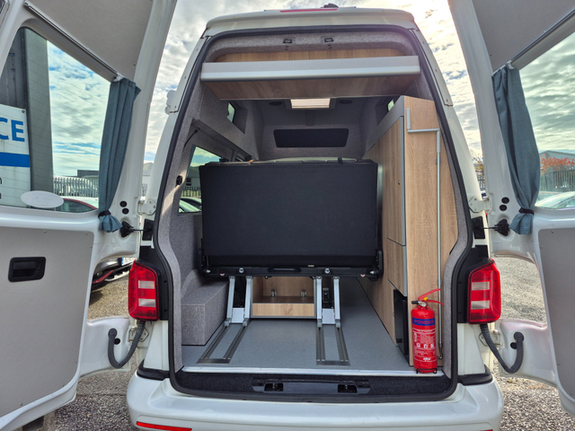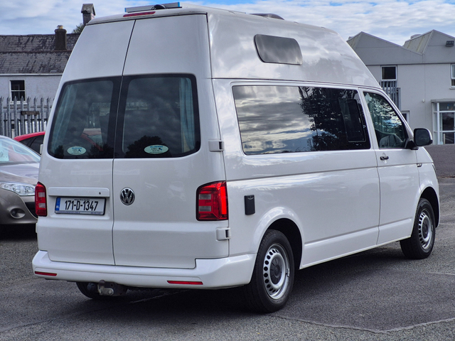 *FINANCE AVAILABLE * 171 VW Transporter T6 2.0tdi dsg highroof camper van /5 passengers plus driver. Original irish van . Only 49k kms/30k miles. 7 speed dsg transmission. Service history with Timing belt kit replaced . Just had a professional camper conversion done and has never been used. Conversion kit includes Windows both sides with privacy glass and curtains. External hook up socket and 10mtr cable. Electrical control unit with 220v outlets,battery charging, RCD,breakers and 12v fuses. 100aph leisure battery with victron 30amp dc-dc charger. 100 watt flexible solar panel with victron solar collar. Interior led strip lights and speakers. 12v socket ,usb charging sockets and 220v double outlet at table. 2kw night heater fitted under drivers seat. 3 seater crash tested rock'n'roll bed which can slide the full length of the van on varimount rail system. Twin hob gas cooker &sink unit. Passenger double seat swivel adaptor. LPG cabinet with gas regulator vented through floor. Over cab storage /rear doors overhead storage lockers. Main saloon table with folding legs. Side awning. IMMACULATE CONDITION VIEWING BY APPOINTMENT. Willowwood cars Balmoral Estate Navan Co.meath C15e439 california transporterT6 campervan Central Locking, Electric Windows, Airbag, Fog Lamps, Rear Spoiler, Multi-function steering wheel, Traction Control, Metallic Paint, EBD, Isofix, Keyless Entry, Active Safety Braking / City Brake / Collision Alert, External Devices Connectivity, Cup holders, Remote boot/hatch/rear door release, Stability control, Air Conditioning, Air bags, Anti theft system, Bluetooth, Central locking, Electric windows, Electronic brakeforce distribution (EBD), Power steering, Traction control (ASR)