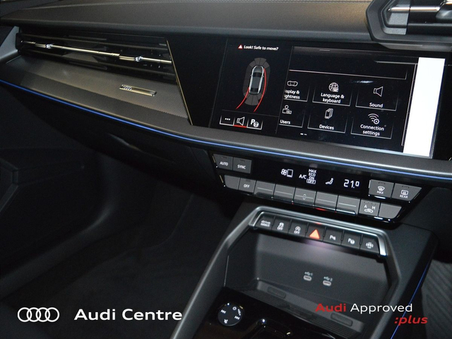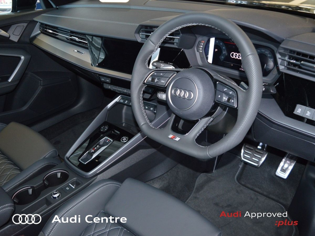 Audi A3 SAL 35 TFSI 150HP S-T S-line Black Edition • Audi Music Interface • Bluetooth Interface • Audi Drive Select • Cruise Control • Power Assisted Steering • 18"Alloys • Black Styling Pack • Metallic Paint • S-Line Exterior Pack • Ambient Lighting • Armrest • Button Start-Stop • Door Sills with Aluminium Inlays • Electric Mirrors Heated Memory • Electric Windows • Front/Rear Floor Mats • Multi-Function Steering Wheel • Rake/Reach Adjustable Steering Column • Leather Interior • ABS • Alarm • Child Locks • Daytime Running Lights • Electronic Stability Programme (ESP) • Hill Hold Assist • ISO Fix • LED Headlights • Light and Rain Sensor • Multiple Airbags • Warning Triangle • USB • Speed Limiter • Sport Suspension • Front Sports Seats • Sport leather steering wheel, flat bottom with multifunction and shift paddles • Stainless steel pedals and footrest • Front emergency brake assist • Lane departure warning with emergency assist • Park assist with parking system plus • Swerve assist and turn assist • Audi Sport Alloys • LED rear lights with dynamic turn signal • Audi Phone Box with wireless charging • Audi Smartphone Interface • Audi Virtual Cockpit