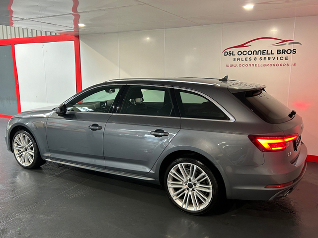 2018 (181) Audi A4 Avant, Factory S Line, 6 Speed manual transmission, 2.0 150Bhp Ultra, Only 77K Miles, One owner from new, Full service history, Grey metallic, Low road tax @ €280 per year, New 2 year test, Satelite navigation system, Surround sound system, Bluetooth phone & media connection, Upgraded LED lights front & rear, Ambient lighting, Cruise control, Multifunctional steering wheel, On board computer, Driving mode options, Optional Rear privacy glass, 19 S Line alloys, Factory S Line half leather half suede interior , Electric seats, Widescreen MMi unit, Xenon headlights, Nationwide dealer warranty included, Nationwide delivery service available, Finance available - apply online www.oconnellbroscars.ie Contact Diarmuid/Liam on 0851049227 6 Month Warranty, Central Locking, Electric Windows, Airbag, Rear Spoiler, Centre Armrest, Multi-function steering wheel, Roof Rails, Satellite Navigation, Traction Control, Metallic Paint, Anti-Theft System, Parking Sensors, Bluetooth, EBD, Isofix, Active Safety Braking / City Brake / Collision Alert, Stop/Start Button, External Devices Connectivity, Cup holders, Remote boot/hatch/rear door release, Stability control