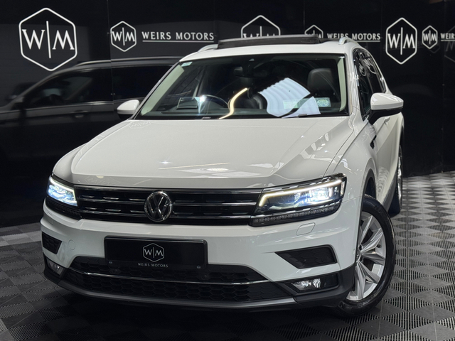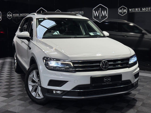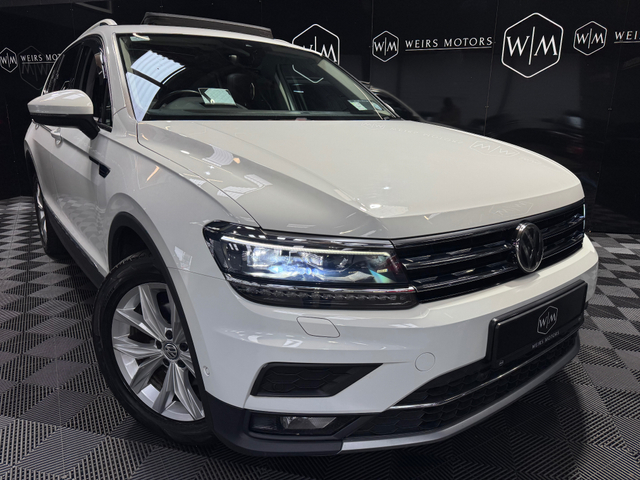**Viewing By Appointment** 2019 (191) VW Tiguan Highline 2.0 TDI 7 Seater Manual with only 88,200km producing 150 Bhp finished in metallic White Features Include *Tilt & Slide Sunroof *Heads Up Display *Reverse Camera *Apple/Android Play *Front Memory Seats *Front Electric Seats *Front Heated Seats *Multi Function Radio *Cruise Control *Dual Climate Control *A/C Welcome to Weirs Motors we are a Simi Registered Dealer Located at 4 Greenhills Road Walkinstown Dublin 12 Eircode - D12Y670 All Our Cars Include Warranty Nct Service Motorcheck Report Fully Valeted Optional 12 or 24 Months Nation Wide Warranty. Finance Can Be Arranged Contact Our Dedicated Sales Team on ( Karl - 0874540043 ) ( Troy - 0873986339 ) ( Landline - 014604550 ) Or Email [email protected] - Follow us on Facebook & Instagram to see our latest deals Central Locking, Electric Windows, Airbag, Cruise Control, Fog Lamps, Privacy Glass, Centre Armrest, Multi-function steering wheel, Roof Rails, Satellite Navigation, Traction Control, Metallic Paint, Parking Sensors, Bluetooth, EBD, Isofix, Apple Car Play, Android Auto, Active Safety Braking / City Brake / Collision Alert, Stop/Start Button, External Devices Connectivity, Cup holders, Remote boot/hatch/rear door release, Stability control