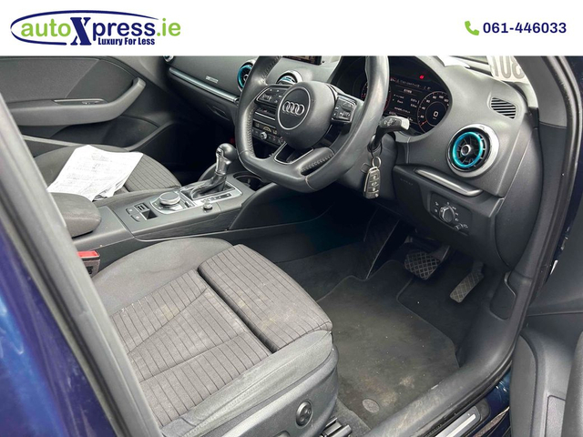 AutoXpress.ie – Luxury for Less! ? Sophisticated & Efficient! ? Please Note: This vehicle is in transit and will be available soon! Arriving soon is a stunning example of German premium compact motoring: the 2018 Audi A3 Sportback 1.4 TFSI Automatic. Combining the versatility of a Sportback with Audi's renowned build quality and the efficiency of the 1.4L Turbo FSI engine, this car is an ideal blend of performance and practicality. This model features the smooth and responsive automatic transmission and comes with a host of desirable features, including a low mileage and a very long NCT. Why Choose AutoXpress.ie? Premium Warranty Included – Drive with complete confidence. All vehicles come fully serviced and professionally valeted. Nationwide delivery available. Trade-ins welcome. ? Finance Options Apply for fast, flexible finance solutions tailored to your budget online! Key Vehicle Details: ? Year: 2018 ? Model: Audi A3 Sportback 1.4 TFSI ? Transmission: Automatic ? Engine: 1.4L Turbo Petrol (TFSI) ? Mileage: 38,525 Miles ? Fuel Type: Petrol ? NCT Valid Until: 10/2027 Top Features (Convenience, Safety & Interior): ADVANCED TECHNOLOGY & ASSISTANCE: Reversing Camera – Essential for easy and safe parking. Push Start (Keyless Go) – Modern convenience for starting the car. F/Stereo (Factory Stereo/MMI) – Integrated infotainment system with media controls. Front Alloy Wheels (F/AW) – Stylish factory-fitted alloy wheels. Automatic Climate Control – Ensures optimal cabin comfort. Bluetooth Connectivity – For seamless phone calls and media streaming. COMFORT & DESIGN: Black Cloth Trim – Durable and comfortable interior upholstery. Front-Wheel Drive (FWD) – Reliable and efficient drivetrain. Split-Folding Rear Seats – Enhances cargo flexibility. Leather Steering Wheel – Premium feel and multi-functionality. ? Contact Us Today: ? Call us in Limerick at 061-446033 or Galway at 091-335696 for more details or to secure this superb hatchback. ? Visit www.autoxpress.ie to explore finance options and secure this fantastic vehicle today! ? Drive away in luxury for less with this low-mileage 2018 Audi A3 Sportback – only at AutoXpress.ie! Cruise Control,Sports Seats,Remote Central Locking,Alloy Wheels,Reversing Camera,Full Service History,Stability Control