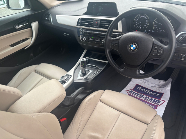 2019 BMW 118 SE 1.5i 3 DOOR AUTOMATIC 140 BHP CANDY WHITE / IVORY LEATHER ONLY 60,000 KMS 2 OWNER IRISH CAR FULL BMW SERVICE RECORD MINT CONDITION APPLY FOR FINANCE @ WWW.OSULLIVANCARS.IE JUST SERVICED VALETED NEW TYRES X 4 LEATHER MULTI FUNCTION STEERING WHEEL, ALLOY WHEELS, LEATHER INTERIOR HEATED SEATS, 2 KEYS, SPORTS SEATS LEG EXTENSIONS, REAR PARK CAMERA, SATELLITE NAVIGATION, BLUETOOTH, CRUISE CONTROL, DUAL CLIMATE CONTROL, REAR PARK DISTANCE CONTROL, LOW KMS MINT CONDITION NCT FEBRUARY 2027 ROAD TAX JULY 2026 TRADE IN POSSIBLE FINANCE AVAILABLE VIEW BY APPOINTMENT WWW.OSULLIVANCARS.ie NCT TO FEBRUARY 2027 ROAD TAX END JULY 2026 TRADE IN POSSIBLE FINANCE AVAILABLE 1 YEAR MPAFRE WARRANTY VIEW BY APPOINTMENT WWW.OSULLIVANCARS.IE 2,SINNOTTSTOWN BUSINESS PK, DRINAGH, WEXFORD TOWN Y35Y058 Central Locking, Electric Windows, Airbag, Fog Lamps, Centre Armrest, Multi-function steering wheel, Satellite Navigation, Traction Control, Anti-Theft System, Bluetooth, EBD, Isofix, Active Safety Braking / City Brake / Collision Alert, Stop/Start Button, External Devices Connectivity, Cup holders, Remote boot/hatch/rear door release, Stability control