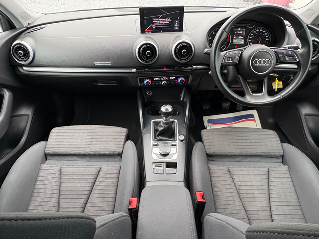 Brilliant Audi A3 6 Speed Manual in stock and now for sale. This car offers comfort, space and safety with fantastic economical performance and build quality that Hyundai is known for. Finished in Black with 17" Audi Alloy Wheels, this car comes with an Manual Gearbox, Parking Sensors, Auto Lights, Electric Folding Mirrors, Electric Windows, LED Front Lights and Front Foglights. Features Inside Include Full Black Leather Interior Heated Front Seats Electric Seats Multifunction Steering Wheel Bluetooth Handsfree Cruise Control Speed Limiter LED Trip Computer Adjustable Steering Full LED Touch Screen Centre Console AndroidAuto Bluetooth Media AM/FM Radio USB/AUX Slot Full Sat-Nav 12v Plugs Auto Air-Conditioning Dual Zone Control Multiple 12v Plugs Steering Mode Selection Hill Decsent Assist Auto Stop/Start Function Centre Armrest Storage Isofix Rear Seats Rear Centre Armrest Privacy Boot Cover Spacious Boot Area Full Set of Floor Mats This is a very smooth, solid driving car with modern comforts and practicality. Maintained very well and in great condition both inside and outside, this car is now ready for a test drive. For more information and all our stock visit www.kieranmorancars.ie Or call 0872425444 0873377775 0876216846 Central Locking, Electric Windows, Airbag, Centre Armrest, Multi-function steering wheel, Traction Control, Metallic Paint, Parking Sensors, Bluetooth, EBD, Isofix, Active Safety Braking / City Brake / Collision Alert, Stop/Start Button, External Devices Connectivity, Cup holders, Remote boot/hatch/rear door release, Stability control