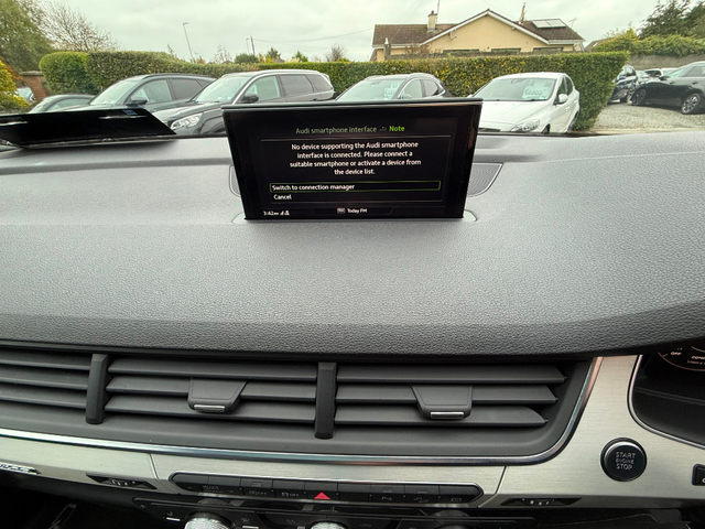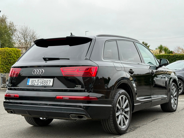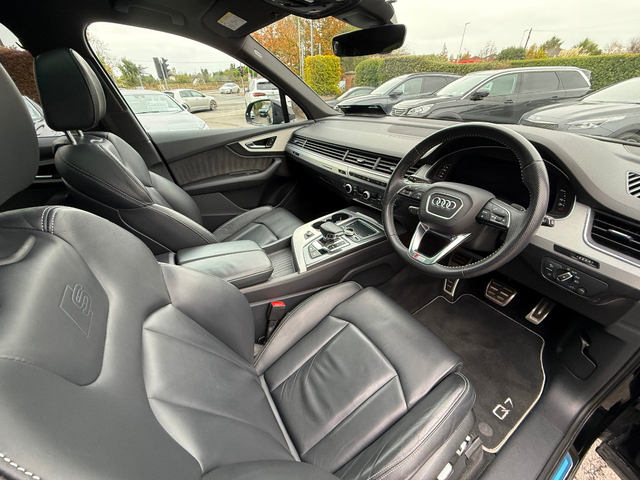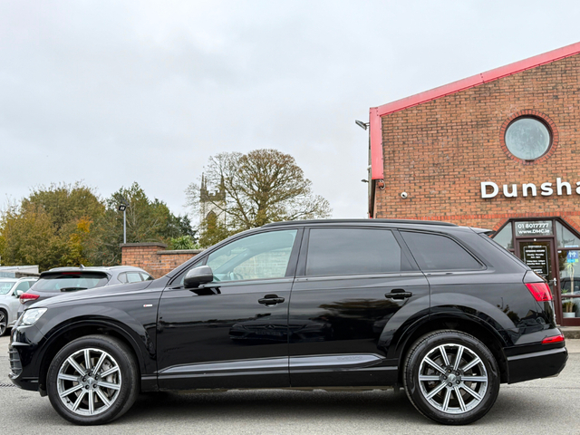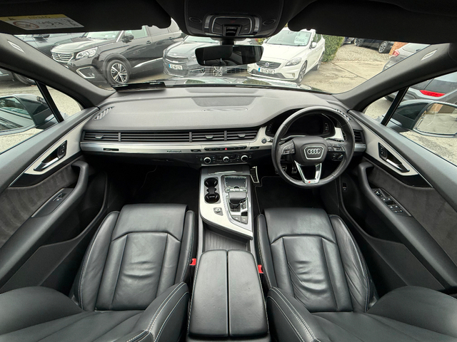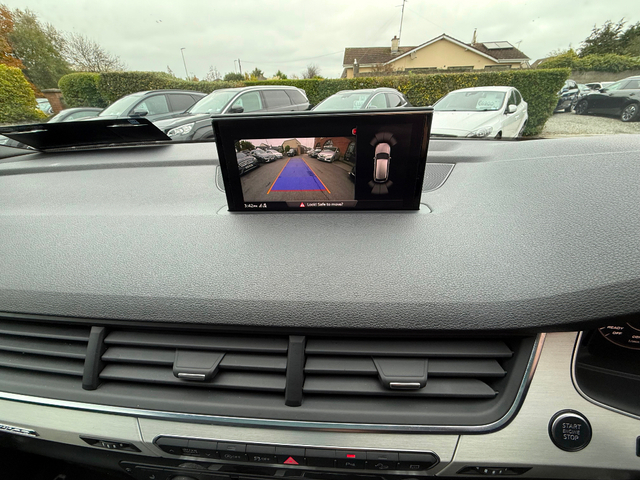 *ONLY TEN MINUTES FROM BLANCHARDSTOWN SHOPPING CENTRE* 2016 Audi Q7 3.0TDI 218BHP S-Line Black Edition Quattro Auto 7 seater in immaculate condition throughout. Original Irish car with an excellent service record and huge spec to include: glass panoramic sunroof, upgraded alloy wheels, air suspension, parking sensors, reverse camera, folding mirrors, rear privacy glass, leather upholstery, heated & electric front seats, sat nav, parking sensors, digital dash, rear climate control, cruise control, sport seats, auto lights & wipers, bluetooth telephone system, media control unit, apple CarPlay, android auto, front centre armrest, abs, esp, isofix, multiple airbags etc. For further information, please contact Aaron on 01 8017777 / 083 1155301