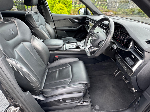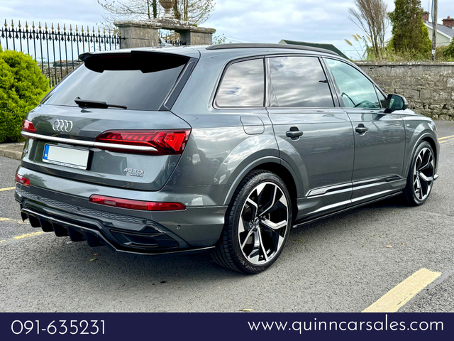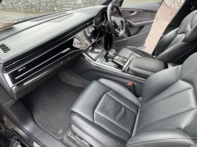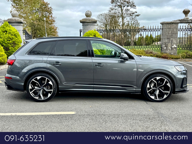 2021 (211) AUDI Q7 45 TDI BLACK EDITION QUATTRO 231 BHP AUTO...DAYTONA GREY METALLIC...FULL BLACK VALCONA NAPPA LEATHER S-LINE SPORTS INTERIOR...UPPER INLAYS IN PIANO BLACK FINISH...LOWER INLAYS IN HIGH GLOSS OAK...UPGRADED 22 INCH DIAMOND TURNED WHEELS...REAR PRIVACY GLASS...FULL HIGH GLOSS BLACK EXTERIOR PACK...HIGH GLOSS BLACK MIRRORS...BLACK BRAKE CALIPERS...REAR DIFFUSER IN MATT TITANIUM BLACK...FULL MAXTON EXTERIOR DESIGN KIT...ELECTRIC FOLDING THIRD ROW SEATS...AUDI SOUND AND VISION PACK...LED AMBIENT INTERIOR LIGHTING PACK...360 DEGREE SURROUND VIW CAMERAS...UPGRAQDED BANG AND OLUFSEN SURROUND SOUND SYSTEM...AUDI ADVANDED KEY WITH COMFORT ACCESS...COMFORT FRONT SEATS WITH 22 WAY ELECTRIC MEMORY AND HEATED SEATS...HD MATRIX LED HEADLIGHTS...HIGH BEAM ASSIST...ACOUSTIC DOUBLE GLAZING...AUDI MMI NAVIGATION PLUS WITH MMI TOUCH...MMI RADIO PLUS AND DAB RADIO...AUDI SMARTPHONE INTERFACE...AUDI PHONE BOX WITH WIRELESS CHARGING TRAY...BLUETOOTH AUDIO STREAMING...MUSIC HARD DRIVE WITH JUKE BOX...TWIN USB INTERFACE...AUDI SOUND SYSTEM...AUDI VOICE CONTROL...AUDI CONNECT INFOTAINMENT SERVICES...COLOUR DIS WITH HIGH RES TFT TOUCH SCREEN...AUDI VIRTUAL COCKPIT WITH 12.3 SCREEN...REAR VIEW CAMERA...AUDI PARKING SYSTEM PLUS...AUDI PRE CENSE CITY...TRAFFIC SIGN RECOGNITION...LANE KEEP ASSIST...LED AMBIENT INTERIOR LIGHTING PACK...ADAPTIVE AIR SUSPENSION...OPERATING BUTTONS IN BLACK...UPGRADED FOUR ZONE AUTO CLIMATE CONTROL FRONT AND BACK ...ISOFIX...MULTIPLE AIRBAGS...FINANCE ARRANGED...PCP AVAILABLE...