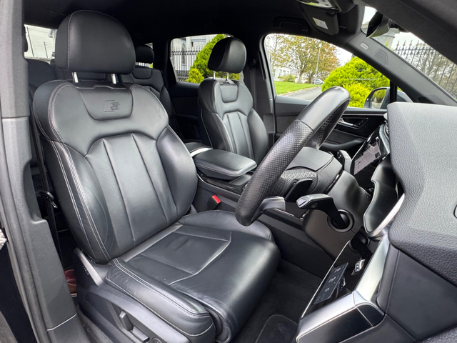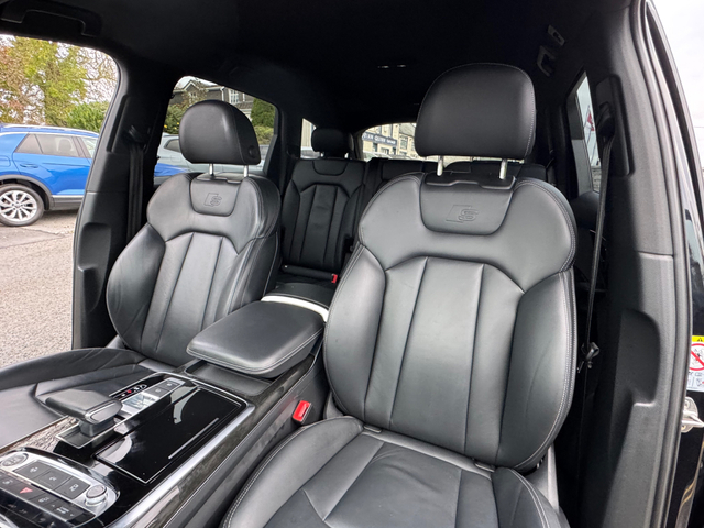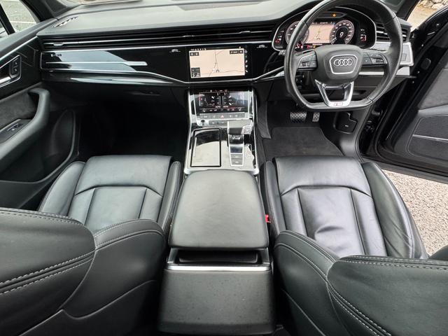 2021 (211) AUDI Q7 55 TFSIe BLACK EDITION QUATTRO 395 BHP AUTO...MYTHOS BLACK METALLIC...FULL BLACK VALCONA NAPPA LEATHER S-LINE SPORTS INTERIOR...UPPER INLAYS IN PIANO BLACK FINISH...LOWER INLAYS IN HIGH GLOSS OAK...UPGRADED 22 INCH DIAMOND TURNED WHEELS...REAR PRIVACY GLASS...FULL HIGH GLOSS BLACK EXTERIOR PACK...HIGH GLOSS BLACK MIRRORS...BLACK BRAKE CALIPERS...REAR DIFFUSER IN MATT TITANIUM BLACK...FULL MAXTON EXTERIOR DESIGN KIT...ELECTRIC FOLDING THIRD ROW SEATS...AUDI SOUND AND VISION PACK...LED AMBIENT INTERIOR LIGHTING PACK...360 DEGREE SURROUND VIW CAMERAS...UPGRAQDED BANG AND OLUFSEN SURROUND SOUND SYSTEM...AUDI ADVANDED KEY WITH COMFORT ACCESS...COMFORT FRONT SEATS WITH 22 WAY ELECTRIC MEMORY AND HEATED SEATS...HD MATRIX LED HEADLIGHTS...HIGH BEAM ASSIST...ACOUSTIC DOUBLE GLAZING...AUDI MMI NAVIGATION PLUS WITH MMI TOUCH...MMI RADIO PLUS AND DAB RADIO...AUDI SMARTPHONE INTERFACE...AUDI PHONE BOX WITH WIRELESS CHARGING TRAY...BLUETOOTH AUDIO STREAMING...MUSIC HARD DRIVE WITH JUKE BOX...TWIN USB INTERFACE...AUDI SOUND SYSTEM...AUDI VOICE CONTROL...AUDI CONNECT INFOTAINMENT SERVICES...COLOUR DIS WITH HIGH RES TFT TOUCH SCREEN...AUDI VIRTUAL COCKPIT WITH 12.3 SCREEN...REAR VIEW CAMERA...AUDI PARKING SYSTEM PLUS...AUDI PRE CENSE CITY...TRAFFIC SIGN RECOGNITION...LANE KEEP ASSIST...LED AMBIENT INTERIOR LIGHTING PACK...ADAPTIVE AIR SUSPENSION...OPERATING BUTTONS IN BLACK...UPGRADED FOUR ZONE AUTO CLIMATE CONTROL FRONT AND BACK ...ISOFIX...MULTIPLE AIRBAGS...FINANCE ARRANGED...PCP AVAILABLE...