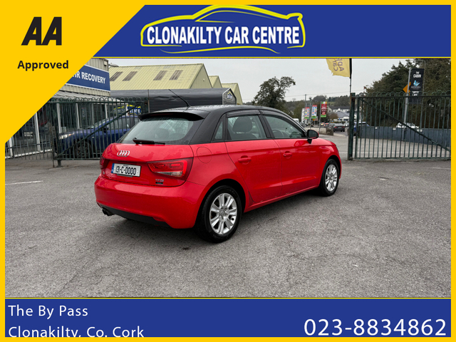 Audi A1 Sportback. 1.4 Tfsi Petrol. Automatic. High spec. Alloy Wheels. 3Month Warranty. 12Month AA Roadside Assistance Looks so good in the red with black roof. Delivery available, (Call for details) Cash,Card Payment or Bank Transfer Finance Available, (Fill in online form on website) Trade ins Welcome, Warranty, Full service, Air con service (when air con fitted) Full valet, Sanity system clean. Enquiries 0238834862 Press 1 for Sales 2 for Serviced 3 for Valeting 4 for Accounts Stephen 0877401942 (Call or text, if unavailable text and I will return call ASAP) Snap chat Stevecloncarcentre Website www.clonakiltycarcentre.com Address Showroom and workshop. Clonakilty car centre, The Bypass, Clonakilty, Co,Cork. P85 ET99. Ford Toyota Honda Nissan Audi Volkswagen Seat Fiat Bmw Mercedes Peugeot Citroen Fiesta focus Yaris Corolla micra up
