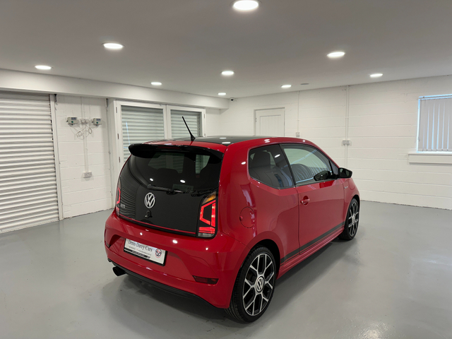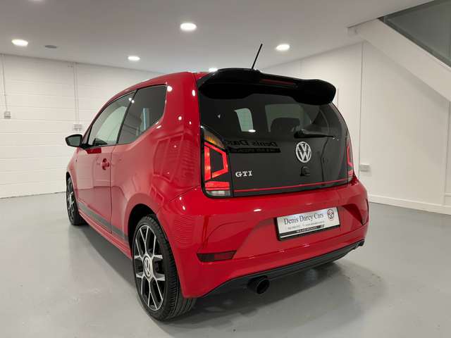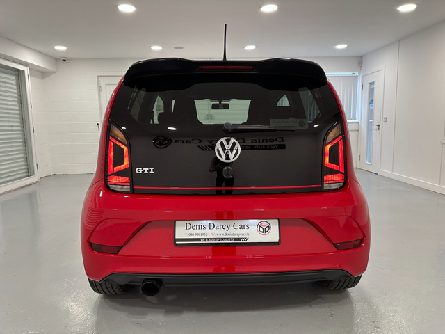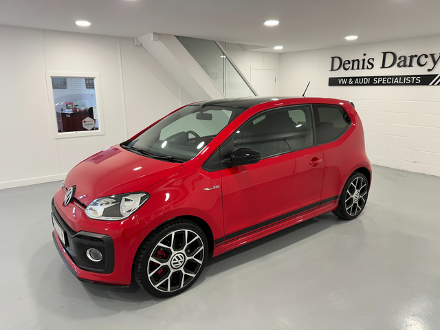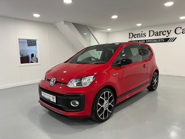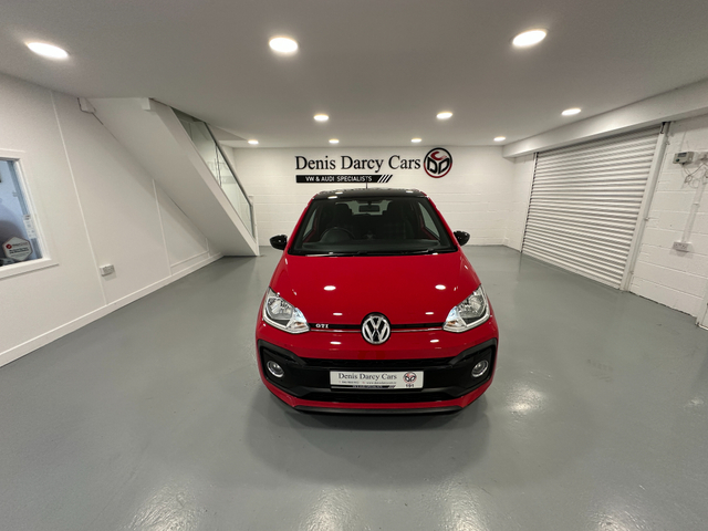 WWW.DENISDARCYCARS.IE VW/AUDI SPECIALISTS. 191 VW UP GTI 3 DOOR MANUAL IN TORNADO RED. SPEC INCLUDES, GTI ALLOYS, FOG LIGHTS, GTI GRILL, BLACK ROOF, PRIVACY GLASS, GTI TARTAN SEATS, MUTIFUNCTION LEATHER STEERING WHEEL WITH GTI BADGE AND RED STITCHING, HEATED SEATS, AIRCON, REAR SPOILER, BLACK MIRRORS, UPGRADED EXHAUST, TWO KEYS, BLACK SIDE DECALS, BLACK ROOF LINING, AMBIENT INTERIOR LIGHTING (CHOICE OF COLOUR) BLUETOOTH. WARRANTY AVAILABLE. WE ARE LOCATED JUST OFF THE M3 MOTORWAY EXIT 9 ,20 MINS FROM DUBLIN. Central Locking, Electric Windows, Airbag, Fog Lamps, Privacy Glass, Multi-function steering wheel, Traction Control, Bluetooth, EBD, Isofix, Keyless Entry, Active Safety Braking / City Brake / Collision Alert, Stop/Start Button, External Devices Connectivity, Cup holders, Stability control