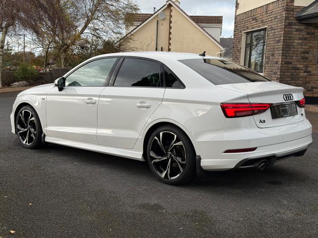 Black Ed Styling 201 Audi A3 Saloon S-Line! Stunning Car All Round Full S-Line Interior with S-Line embossed seats Serviced Timing belt replaced Black Edition Styling Valeted Parking Sensors Upgraded alloys Bluetooth Phone and Media Part Exchange welcome Contact us on 087 9878860 for more details. Please call or text to avoid disappointment. Viewings by appointment only. Please contact one hour in advance of arrival. Visit us on Facebook, Instagram or GaryGilesCars.ie! Gary Giles Cars Air conditioning, Armrest, Keyless entry, Electric side mirrors, Electric windows, Electric handbrake, Multi-function steering wheel, Spare tyre, Android Auto, Apple CarPlay, Bluetooth, 12v power outlet, Radio, USB connection (front), Cruise control, Hill hold assist, Rear parking sensors, Remote boot release, Start-stop system, Alloy wheels, Leather steering wheel, Spoiler, Sports seats, Auto lights (dusk sensor), Daytime running lights, Fog lights, LED headlights, ABS, Anti collision system, Emergency brake assist, Central locking, Remote central locking, Driver-side airbag, Immobilizer, Isofix, Tyre pressure monitor, Passenger-side airbag, Seat belt warning, Side airbag, Stability control, Traction control, Sport suspension