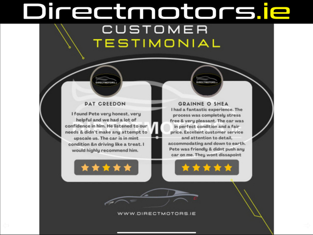 ** TO VIEW THIS VEHICLE PLEASE ENSURE YOU RING US FIRST ON 085-8030104 ***WE OFFER NATION WIDE DELIVERY*** Here at Direct Motors.ie we stock Corks Best Range of Quality Used Cars. We are a family run business where we ensure a straightforward and personal experience when buying a used car. All cars are fully serviced!! All cars come with an NCT!! All cars come with up to 6 months warranty!! All cars come with a history report!! ***WE OFFER CAR FINANCE*** HEAD OVER TO -- WWW.DIRECTMOTORS.IE TO APPLY **ASK US TODAY FOR YOUR PERSONALISED VIDEO OF ANY CAR** 6 Month Warranty, Trade in accepted, Central Locking, Immaculate condition, Electric Windows, Airbag, Fog Lamps, Immobiliser, Heated Seats, Centre Armrest, Multi-function steering wheel, Satellite Navigation, Traction Control, Anti-Theft System, Parking Sensors, Bluetooth, EBD, Isofix, History Checked, Active Safety Braking / City Brake / Collision Alert, Stop/Start Button, 2 Keys, External Devices Connectivity, Cup holders, Remote boot/hatch/rear door release, Stability control