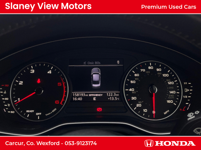 2016 Audi A4 Now Only €15,950! Check out this stunning 2016 Audi A4 2.0L S Line Manual (150PS TDI 4DR) a premium car at an incredible price! Price Drop Was €16,950, now €15,950 a fantastic offer not to be missed! Warranty Includes 6 months warranty (up to 10,000 km) for your peace of mind. Features Include Sleek S Line styling Powerful and efficient 2.0L TDI engine Manual transmission for a dynamic drive Premium interior and comfort features Contact Us For more information or to book a test drive, call 053 912 3174 or visit us at Slaney View Motors, Carcur, County Wexford. Drive away in style today with this exceptional Audi A4! 6 Month Warranty, Central Locking, CD Player, Electric Windows, Airbag, Cruise Control, Centre Armrest, Multi-function steering wheel, Satellite Navigation, Traction Control, Metallic Paint, Anti-Theft System, Parking Sensors, Bluetooth, EBD, Isofix, Apple Car Play, Android Auto, Active Safety Braking / City Brake / Collision Alert, Stop/Start Button, External Devices Connectivity, Cup holders, Remote boot/hatch/rear door release, Stability control