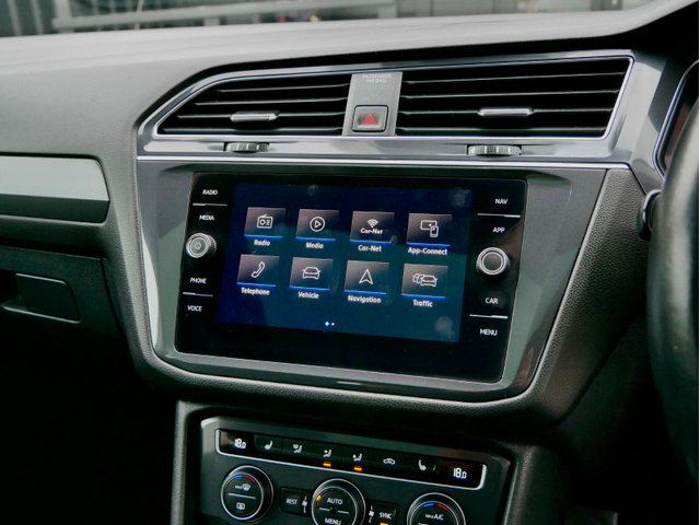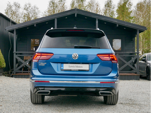 2020 VW Tiguan Allspace R-Line is now in stock Presented in Blue Silk Metallic, paired to a Crystal Grey Vienna leather interior and powered by a turbocharged 2.0l diesel engine which produces 150BHP and is paired to a DSG transmission Joining this is a wealth of extras which include LED headlights LED taillights R-Line bodykit 19” Sebring alloy wheels Discover media infotainment system Rear view camera Panoramic tilt and slide sunroof Adaptive cruise control Active info display 3 zone climate control Keyless access Head up display Drive mode select Start/ stop 7 seats VW driver assist suite Auto lights Air conditioning, Climate control, Dual zone climate control, Multi zone climate control, Armrest, Keyless entry, Electrically adjustable seats, Electric side mirrors, Electric windows, Electric handbrake, Heated seats, Lumbar support, Multi-function steering wheel, Rain sensor, Gear shift paddles, Android Auto, Apple CarPlay, Bluetooth, 12v power outlet, Radio, Touch screen display, USB connection (front), Adaptive cruise control, Cruise control, Hill hold assist, Navigation system, Self-steering parking, Parking camera, Front parking sensors, Rear parking sensors, Remote boot release, Roof rails, Speed limiter, Start-stop system, Traffic sign recognition, Voice control, Parking assistance, Digital instrument panel, Alloy wheels, Leather interior, Leather steering wheel, Spoiler, Ambient lighting, Auto lights (dusk sensor), Daytime running lights, LED headlights, ABS, Lane change assist, Anti collision system, Emergency brake assist, Central locking, Remote central locking, Driver-side airbag, Immobilizer, Isofix, Lane departure warning, Tyre pressure monitor, Passenger-side airbag, Seat belt warning, Side airbag, Stability control, Traction control, Emergency tyre repair kit