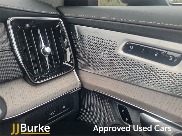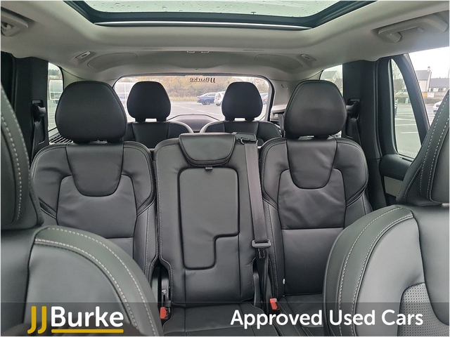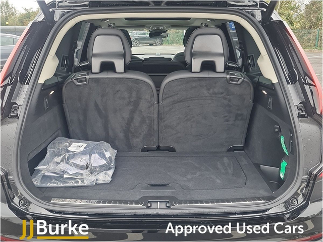 7-Seater Luxury Family SUV Just arrived at JJ Burke Carsales, Ballinrobe, Co. Mayo. Book your test drive today! The Volvo XC90 T8 Ultra Dark boasts impressive acceleration, reaching 0 to 60mph in just 5.1 seconds, demonstrating its dynamic capabilities. This performance, combined with its advanced plug in hybrid technology and Four Wheel Drive system, sets it apart from many other vehicles in its class. • Top-of-the-range Ultra model – packed with luxury and comfort features • Plug-in Hybrid (PHEV) – enjoy electric driving for short trips and petrol for longer journeys • Automatic & All-Wheel Drive – smooth, confident driving in all conditions • Spacious 7-seater – ideal for families and long-distance travel • Beautifully finished interior – leather seats, panoramic sunroof, premium sound system • Modern Volvo design – sleek, safe, and full of smart technology • Excellent efficiency – low running costs with hybrid power • Advanced safety features – Volvo’s world-leading safety systems for total peace of mind • Imported from the UK – immaculate example with high spec and great condition Features include: • towing weight of 2400 kg • heated steering wheel for added comfort • power passenger seat with memory function • heated front seats • Front seat massage • 22” 7-double spoke glossy black diamond cut alloys • Blond headlining • Grey Ash décor • Tailored leather steering wheel • Crystal gear shift by Orrefors® • Third row air conditioning • Four-zone climate system • Afterrun parking climate • Passenger airbag cut-off switch • Dual-stage airbags • Knee airbag • Panoramic roof • Road Sign Information • Lane Keeping Aid and Lane Departure Warning • Front grille with high-gloss black frame and matt black inserts • Heated grill emblem • Matrix-design LED headlights • Headlight cleaning • Trailer lamp control • 12.3-inch driver display • Google Assistant, Google Maps and Google Play Store - included for 4 years • Adaptive cruise control • Head-up display • Intelligent Speed Assist (ISA) • Volvo Cars App remote functions • Air-ventilated subwoofer • Digital Audio Broadcasting (DAB+) • Bowers & Wilkins High Fidelity audio system • Power retractable door mirrors • Power passenger seat with memory • Wireless phone charging • Central locking controls front and rear doors • Remote key • Door mirror covers • high-gloss black • Double locking • Tinted rear windows • Cross Traffic Alert • Alarm • Power child safety lock • Keyless entry with hands-free power tailgate • Air purifier and remote cabin pre-cleaning • Textile mats third-row • Tailored dashboard and door top panels • Ventilated nappa leather upholstery • Front seat massage • Power driver seat with memory • Power passenger seat Plus much more. Price displayed includes minimum scrappage allowance of €1,000 – retail price €89,950 Excellent Finance Packages available. Talk to our sales team on 094 954 1359 or on mobile: Yordan 087 444 0909, Carlos 087 434 8970, Alan 086 410 7147 and John 087 782 0552.