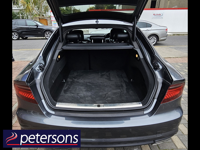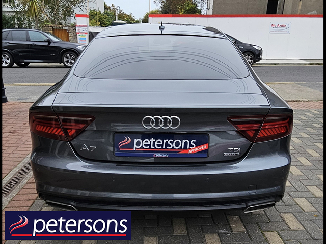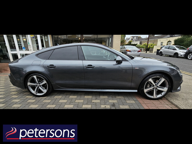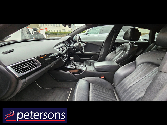 THIS CAR IS NOW RESERVED!!! AUDI A7 3.0 TDI QUATTRO S-LINE AUTOMATIC, FULL BLACK LEATHER INTERIOR, HEATED SEATS, ELECTRIC SEATS, DRIVER SEAT POSITION MEMORY, SELECTABLE DRIVING MODES, POPUP DISPLAY, SATNAV, BLUETOOTH, CD PLAYER, MULTIPLE USB CONNECTIONS, AUX CONNECTION, MULTIFUNCTION STEERING WHEEL, FRONT AND REAR PARKING SENSORS, FRONT AND REAR PARKING CAMERAS, STOP/START BUTTON, ELECTRONIC HANDBRAKE, AUTOMATIC LIGHTS, DAYTIME LIGHTS, ELECTRIC WINDOWS AND MIRRORS, PRIVACY GLASS, HEATED MIRRORS, POWER FOLDING MIRRORS, LUGGAGE COVER, MOTORISED BOOT, REMOTE CENTRAL LCOKING, ALLOY WHEELS. WELCOME TO PETERSONS - PETERSONS HAVE BEEN SELLING CARS SINCE 1970s FROM OUR LOCATION ON TIVOLI ROAD IN DUN LAOGHAIRE, WITH OUR VAST EXPERIENCE AND KNOWLEDGE ALL OUR CARS GO THROUGH A METICULOUS INSPECTION PROCESS, WE OFFER A VAST RANGE OF PRE-OWNED VEHICLES THAT ARE CHOSEN WITH OUR CUSTOMERS NEEDS IN MIND, CONTACT ANDY OR PATRICK @ SALES ON 01-2806917 TO ARRANGE A TEST DRIVE. Air Conditioning, Central Locking, CD Player, Electric Windows, Airbag, Alloy Wheels, Cruise Control, Electric Mirrors, Electric Seats, Immobiliser, Full Leather, Privacy Glass, Heated Seats, Automatic Lights, Centre Armrest, Luggage Cover, Multi-function steering wheel, Climate Control, Satellite Navigation, Traction Control, Metallic Paint, Multiple Air Bags, Anti-Theft System, Parking Sensors, Bluetooth, Remote Central Locking, EBD, Electronic handbrake, Isofix, History Checked, Finance Checked, Reversing Camera, Motorised Tailgate, Front Parking Sensors, Active Safety Braking / City Brake / Collision Alert, Stop/Start Button, Drive Mode Selector, Dual Zone Climate Control, Daytime Running Lights, External Devices Connectivity, Cup holders, Stability control