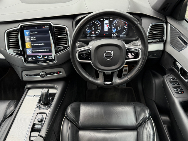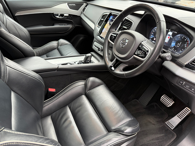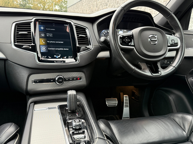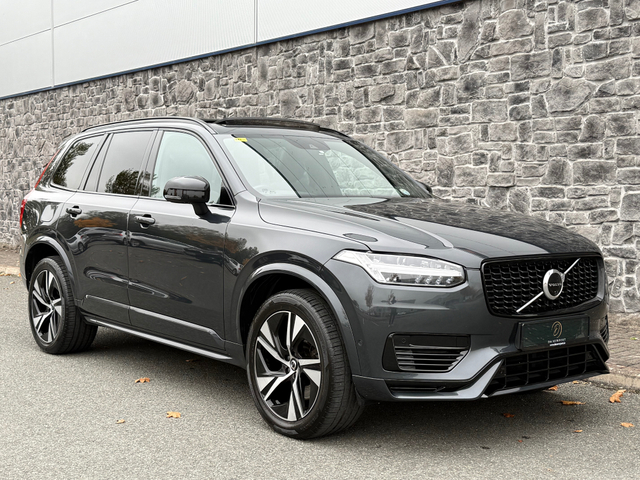 Outstanding Grey 2021 Volvo XC90 R Design T8 PHEV Dark edition 2.0 PHEV 390bhp 7 seats All wheel Drive Full Black leather interior Full service history 1 owner Huge factory specification Reverse camera 360 cameras Panoramic sliding sunroof Virtual cockpit Fully electric and Memory seats Heated seats Apple/ Android car play Wireless charging Parking sensors Privacy glass 5 zone climate control Rear touch screen climate control Electric boot lid Park assist Lane departure warning ISO fix Keyless entry Electric folding mirrors Touch screen multimedia Satellite navigation Bluetooth connectivity Auto lights and wipers Rear retractable sun blinds LED daytime running lights Volvo drive mode select In drive charge mode Cruise control Charge cables New NCT 5/27 78mls/126klm 2 keys Finance available Warranty Indoor viewing Viewing by appointment in Naas Co.Kildare Central Locking, Electric Windows, Airbag, Cruise Control, Rear Spoiler, Privacy Glass, Centre Armrest, Multi-function steering wheel, Roof Rails, Satellite Navigation, Traction Control, Anti-Theft System, Parking Sensors, Bluetooth, EBD, Isofix, Active Safety Braking / City Brake / Collision Alert, Stop/Start Button, Touch Screen Media Control, External Devices Connectivity, Cup holders, Remote boot/hatch/rear door release, Stability control