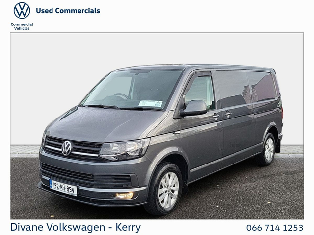 TRANSPORTER HIGHLINE 2.0 TDI 150 BHP M6F LONG WHEEL BASE IN INDIUM GREY METALLIC FITTED HITCH TIMING BELT DONE €333 ROAD TAX. CALL FOR MORE INFO! • ABS • Daytime Running Lights • Flat Tyre Indicator • Multiple Airbags • Immobilizer • Auto Lights and Wipers • Cruise Control • Power Steering • Remote Central Locking • Satellite Navigation • Stop and Start System • Adjustable Steering Column • Air Conditioning • Armrest • Bluetooth Phone • Leather Multi-functional Steering Wheel • Onboard Computer • Split Fold Rear Seats • Touchscreen Stereo • USB • Alloy Wheels • Electric Mirrors • Electric Windows • Front Fog Lights • Metallic Paint • Full Service History • Towbar • App Connect • Parking sensors • Solid Bulkhead • Heated Windscreen • VW Bank Finance Available