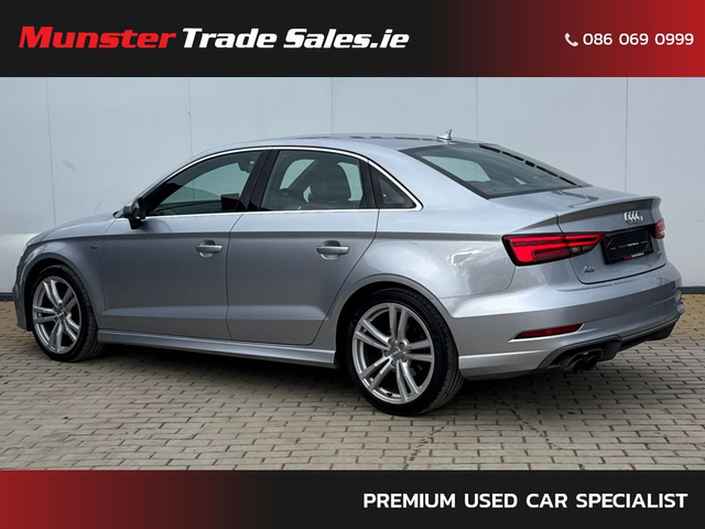 2017 Audi A3 1.4 TFSI S line Saloon – 6-Speed Manual Floret Silver Metallic | Black Interior | 1.4 TFSI (150 PS) | Front-Wheel Drive Refined, efficient, and unmistakably Audi — this A3 S line Saloon combines timeless design with sharp performance and everyday usability. Finished in Floret Silver Metallic with a sleek black interior, this model delivers the perfect balance of sporty styling and executive comfort. Powered by a 1.4-litre TFSI petrol engine producing 150 PS, paired with a 6-speed manual transmission, it offers responsive performance and excellent fuel economy — ideal for both city driving and long-distance journeys. Key Features • S line Exterior Styling Package • 18" 5-Parallel-Spoke Alloy Wheels • LED Headlights with Dynamic Rear Indicators • Sports Suspension & Audi Drive Select • Sports Front Seats with Height & Thigh Adjustment • Flat-Bottom Leather Multifunction Steering Wheel • Brushed Aluminium Interior Trim & Stainless Steel Pedals • Dual-Zone Climate Control • Rear Parking Sensors • Bluetooth Connectivity & Audi Smartphone Interface • DAB Digital Radio & Navigation Package • High-Gloss Exterior Styling Package Performance & Efficiency • 1.4 TFSI 4-Cylinder Petrol Engine (150 PS) • 6-Speed Manual Gearbox • Front-Wheel Drive • Start/Stop System & ECO Function • Combined Fuel Economy: 50+ mpg (depending on driving conditions) The Audi A3 S line Saloon — where compact agility meets premium sophistication. Well-equipped, meticulously maintained, and ready to impress. ? Available now at Munster Trade Sales Your destination for premium pre-owned vehicles.