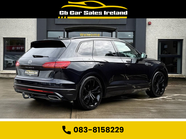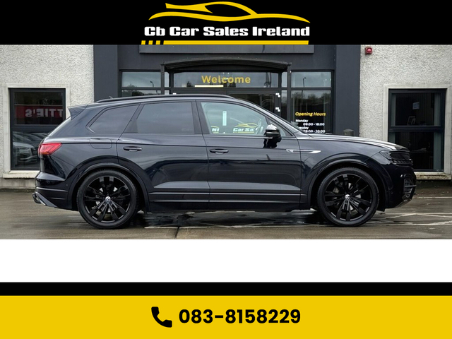 2022 VOLKSWAGEN TOUAREG BLACK EDITION 3.0 V6 4MOTION 282 BHP 1 Owner from new, Covered 56k miles, Finished in Black, Key Features include Panoramic glass sunroof 21'' Factory fitted alloy wheels Adaptive Air Suspension Rear Privacy glass Front and Rear Parking sensors 360* Parking Camera Full Leather R Line Interior Leather Multifunctional steering wheel Paddle shift Heated front seats Heated steering wheel Electrically adjustable front seats Drive seat memory function Dual Climate Control Virtual Cockpit DAB Radio / Bluetooth / Sat Nav Apple / Android Car Play Electronic Tailgate ISOFIX Child seat points And so much more.. Call today to arrange a test drive Tailored finance packages available to suit your needs (Excludes ROI) Comprehensive warranty on all cars Trade ins welcome Delivery to North and South of Ireland if required MOT Expires 21 August 2026 VRT €33,994 NOX €90 Total price to ROI €85,300 Central Locking, Electric Windows, Airbag, Cruise Control, Sunroof, Rear Spoiler, Privacy Glass, Centre Armrest, Multi-function steering wheel, Roof Rails, Satellite Navigation, Traction Control, Anti-Theft System, Parking Sensors, Bluetooth, EBD, Isofix, Apple Car Play, Android Auto, Panoramic Sunroof, Active Safety Braking / City Brake / Collision Alert, Stop/Start Button, Touch Screen Media Control, External Devices Connectivity, Cup holders, Remote boot/hatch/rear door release, Stability control
