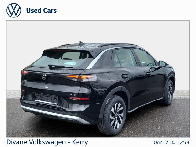 VOLKSWAGEN T -ROC LIFE 1.0 TSI PETROL 116BHP MHEV METALLIC PAINT • 16” ‘Bilbao’ alloys • Folding mirrors w/ light • projection • Keyless Access w/o • SAFELOCK • 12.9” infotainment • display • Rear traffic alerT • LED headlights • Rear View Camera • Keyless Advanced VOLKSWAGEN RETAIL PRICE: 42,500 • ABS • Driver Airbag • Passenger Airbag • Child Locks • Daytime Running Lights • ESP • Flat Tyre Indicator • ISO Fix • Multiple Airbags • Immobilizer • Auto Handbrake • Auto Lights and Wipers • Cruise Control • Hill Hold • Power Steering • Remote Central Locking • Satellite Navigation • Stop and Start System • Total Closure System • Adjustable Steering Column • Auxiliary Socket • Air Conditioning • Armrest • Bluetooth Phone • CD player • Leather Multi-functional Steering Wheel • Lumbar Support • Onboard Computer • Split Fold Rear Seats • Touchscreen Stereo • USB • Alloy Wheels • Chrome Package • Electric Mirrors • Electric Windows • Front Fog Lights • Privacy Glass • Full Service History • App Connect • Front Assist • Parking sensors • Styling Pack • Technology Pack • VW Bank Finance Available