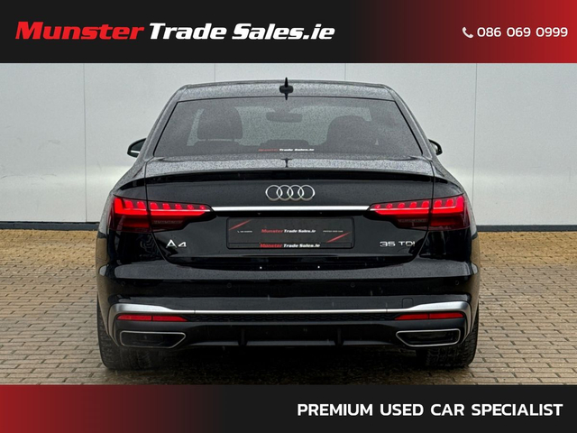 2022 Audi A4 35 TDI S line S tronic Automatic Mythos Black Metallic | S line Interior with Dinamica & Leather | 163 PS Mild Hybrid Diesel Key Highlights • S line Exterior Styling with Gloss Black Accents • 19” Audi Sport 5-Arm Torsio Alloy Wheels • LED Headlights & Dynamic Rear Indicators • S line Sport Suspension & Audi Drive Select • Sport Seats in Dinamica Microfibre/Leather with S Embossing • Ambient Lighting Package & Stainless Steel Pedals • Heated Front Seats with 4-Way Lumbar Support • Virtual Cockpit Plus & MMI Navigation Plus with Touch • Reversing Camera & Parking System Plus • 3-Zone Deluxe Climate Control • Power-Operated Boot Lid & Privacy Glass • Flat-Bottom 3-Spoke Multifunction Steering Wheel Performance & Efficiency 2.0L TDI Mild Hybrid | 163 PS | 7-Speed S tronic Front-Wheel Drive | Up to 58 mpg (WLTP) Elegant, efficient, and unmistakably Audi — the A4 S line redefines modern executive driving. Available now at Munster Trade Sales, Limerick. • Full vehicle Service & inspection • Professionally valeted & Detailed • Car History Checked • Finance Available • Full Service History • 2 Remote keys