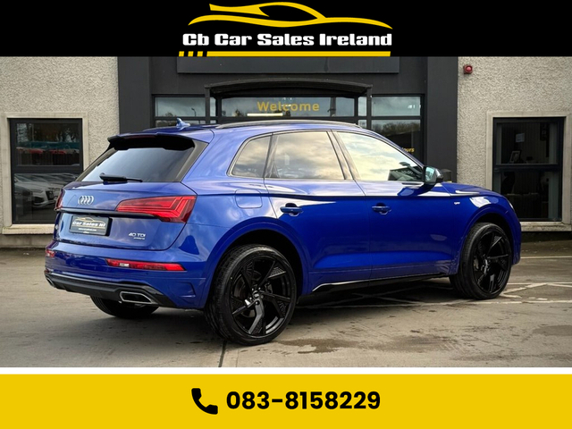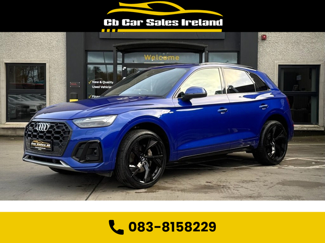 2023 AUDI Q5 S LINE 40 TDI QUATTRO 202 BHP 1 Owner from new, 2.0 Diesel Model, Covered 45k miles, Finished in Ultra Blue, Key Features include 21'' Upgraded alloy wheels (1,100 Optional extra) Rear Privacy glass Black Edition styling Front and Rear Parking sensors Reversing Camera Half Leather S Line Interior Leather Multifunctional steering wheel Paddle shift Heated front seats Dual Climate Control Virtual cockpit DAB Radio / Bluetooth / Sat Nav Apple / Android Car Play AUDI Drive Mode Select Electronic Tailgate ISOFIX Child seat points And so much more.. Call today to arrange a test drive Tailored finance packages available to suit your needs, Comprehensive warranty on all cars Trade ins welcome Delivery to North and South of Ireland if required MOT Expires January 2027 VRT €15,825 NOX €500 Total price to ROI €56,200 Central Locking, Electric Windows, Airbag, Rear Spoiler, Privacy Glass, Centre Armrest, Multi-function steering wheel, Roof Rails, Satellite Navigation, Traction Control, Metallic Paint, Anti-Theft System, Parking Sensors, Bluetooth, EBD, Isofix, Active Safety Braking / City Brake / Collision Alert, Stop/Start Button, External Devices Connectivity, Cup holders, Remote boot/hatch/rear door release, Stability control