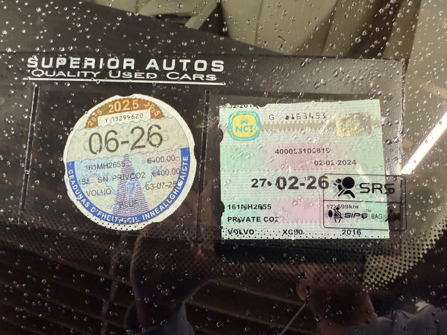 2016 Volvo XC90 D5 Momentum 7 Seater Diesel - 195,000KM - Navy Metallic Paint - 2.0 Diesel 225BHP - Automatic Gearbox - Rear Privacy Glass - 7 Seater - Two Tone Cream Leather Interior - Heated Electric Front Seats - Reversing Camera - Virtual Dash - Satellite Navigation - Memory Seats - Full Service Record Finance Options Available Trade Ins Accepted - 3 Months Dealer Warranty - NCT 02/26 - TAX 06/26 - Freshly Serviced By Volvo Straight Sale Price € 28,995 Trade In Price € 29,995 Contact Jack 0872720576 Air conditioning, Climate control, Dual zone climate control, Armrest, Keyless entry, Electrically adjustable seats, Electric boot, Electric side mirrors, Electric windows, Electric handbrake, Lumbar support, Multi-function steering wheel, Rain sensor, Split rear seats, Bluetooth, 12v power outlet, Radio, Touch screen display, USB connection (front), Wifi, Cruise control, Hill hold assist, Navigation system, Rear parking sensors, Remote boot release, Roof rails, Speed limiter, Start-stop system, Traffic sign recognition, Voice control, Digital instrument panel, Alloy wheels, Leather interior, Leather steering wheel, Spoiler, Tinted windows, Adaptive headlights, Auto lights (dusk sensor), Daytime running lights, High beam assist, LED headlights, ABS, Anti collision system, Alarm system, Emergency brake assist, Central locking, Driver-side airbag, Immobilizer, Isofix, Lane departure warning, Tyre pressure monitor, Passenger-side airbag, Seat belt warning, Side airbag, Stability control, Traction control, Emergency tyre repair kit, 4WD