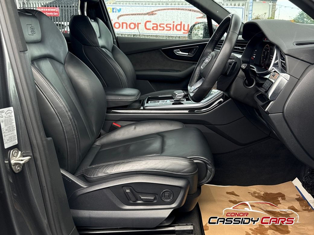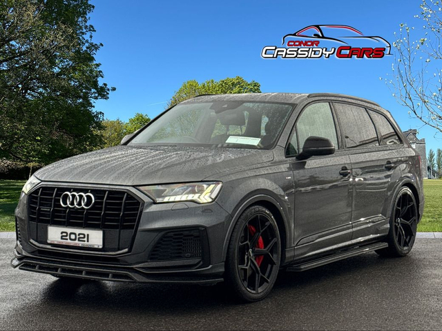 * 2021 AUDI Q7 TFSI E QUATTRO *S-LINE BLACK EDITION* JUST AFTER ARRIVING INTO STOCK * - Straight Sale Discount Price : € - Retail/Trade in Price : € OPTIONAL UPGRADED 22" ALLOYS FOR ONLY €1600 STUNNING CAR FINISHED WITH A MASSIVE RANGE OF FEATURES INSIDE AND OUT INCLUDING - LEATHER INTERIOR - HEATED SEATS - REVERSING CAMERA - CRUISE CONTROL - APP Connect - MULTI FUNCTIONAL STEERING WHEEL - ELECTRIC BOOT - AIR SUSPENTION - DIGITAL DASH AND MUCH MORE. FINISHED IN STUNNING GREY. At Conor Cassidy Cars, our mission is simple: to offer top-quality cars at unbeatable prices. Each vehicle is meticulously inspected by our in-house service team. This includes: • A full service • Warranty • Complete vehicle preparation • Guaranteed NCT pass Safety, reliability, and customer satisfaction are at the heart of everything we do. We accept all trade-ins, which can be redeemed against your new car purchase. As authorized credit intermediaries, we arrange flexible financing with: • AIB • Bank of Ireland • Lombard • Close Brothers • And many more to ensure you get the best available rate. Same-Day Finance Approval • 95% success rate • Weekly payments tailored to your deposit or trade-in Contact our finance manager to explore your payment options today! Additional Benefits Include: • Warranties ranging from 6 to 24 months • A full Cartell history report for peace of mind • Comprehensive service history from new With every car purchase, we guarantee: • A full service • Professional interior and exterior detailing • VRT to the buyer’s county • A new 2-year NCT Why Choose Conor Cassidy Cars? • Nationwide Warranty • Nationwide Delivery • Flexible Financing Options • Trade-Ins Welcome Our Accolades: • All-Ireland Accredited Business • Fastest Growing Used Car Dealership in Connacht • Award-Winning Social Media (2020, 2024) • Best Online Marketing in Connacht (2021) • All-Ireland Winner of “Best Online Marketing” (2021) • Best Online Presentation in Connacht (2023) SIMI-Approved Dealer Buying from a SIMI-accredited member ensures total peace of mind when purchasing a used car. Our reputation is built on trust, performance, and customer satisfaction. Don’t just take our word for it—check out our glowing reviews! Get in Touch Today! Conor: (087) 284 0539 Darren: (086) 450 4943 Pedro: (083) 460 0343 Office: (090) 662 8310 “WHERE QUALITY MEETS VALUE @ CCC.IE” Thank you for considering Conor Cassidy Cars. Located on Lanesborough Road in Roscommon, we’re here to help you find your dream car. Visit our showroom, give us a call, or click the inquiry link to connect with our team. We look forward to serving you! Bluetooth,Centre Armrest,Climate Control,Cruise Control,Electric Mirrors,Electric Seats,Electric Windows,Electronic handbrake,Heated Seats,Six speed transmission,Air Conditioning,Alarm,Anti-Theft System,Central Locking,Keyless Entry,Multiple Air Bags,Parking Sensors,Remote Central Locking,Traction Control,Alloy Wheels,Metallic Paint,Privacy Glass,Rear Spoiler,All-Leather Seats,Android Auto,Apple CarPlay,Multi-Function Steering Wheel,Sat Nav,Selectable Drive Mode,Sport-Tuned Suspension,Stop/Start Button,Touch Screen Infotainment System,Adaptive Cruise Control,Automatic Lights,Automatic Wipers,Blind Spot Detection,Collision Alert,Front Parking Sensors,Isofix Points,Reversing Camera,Leather Upholstery,Augmented Reality Cockpit,LED Headlights,Driver Assistance Pack,USB Connection,Cup Holders,Remote Door Release