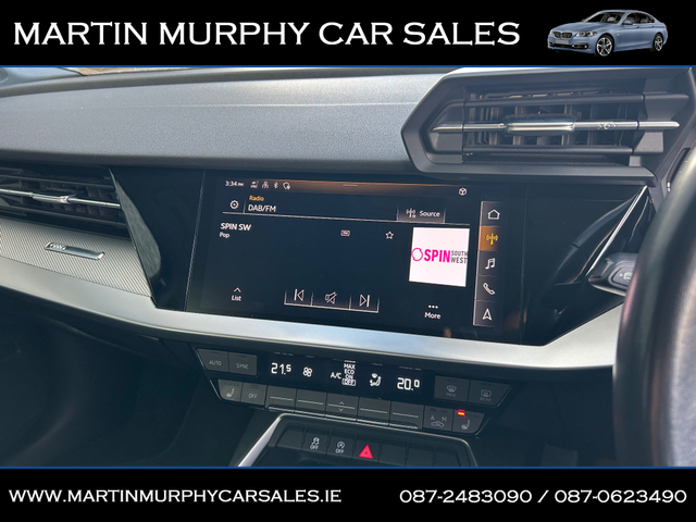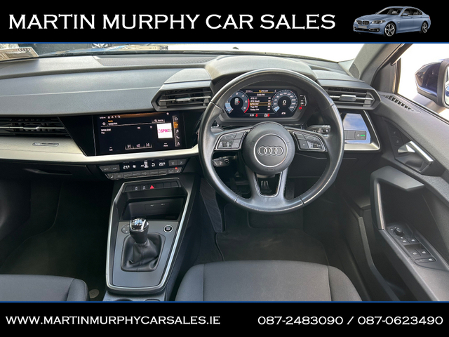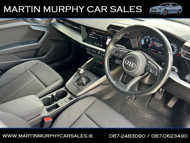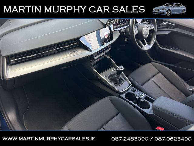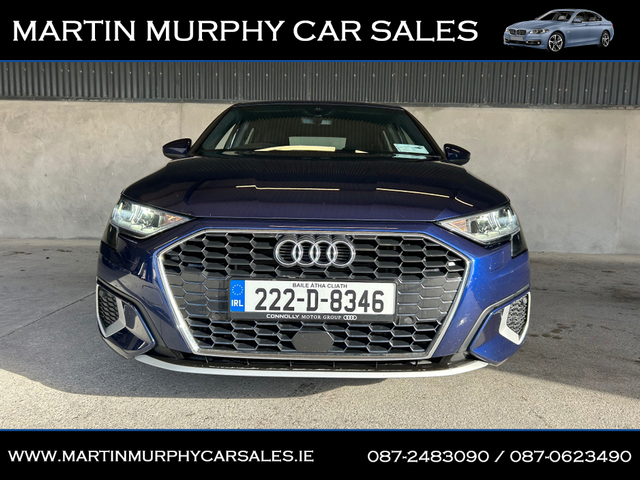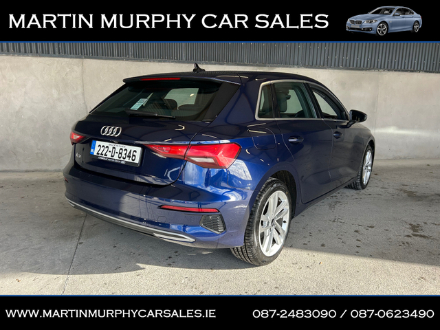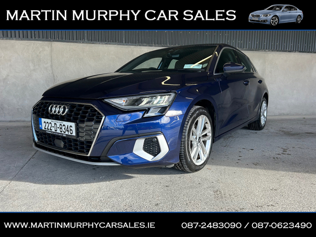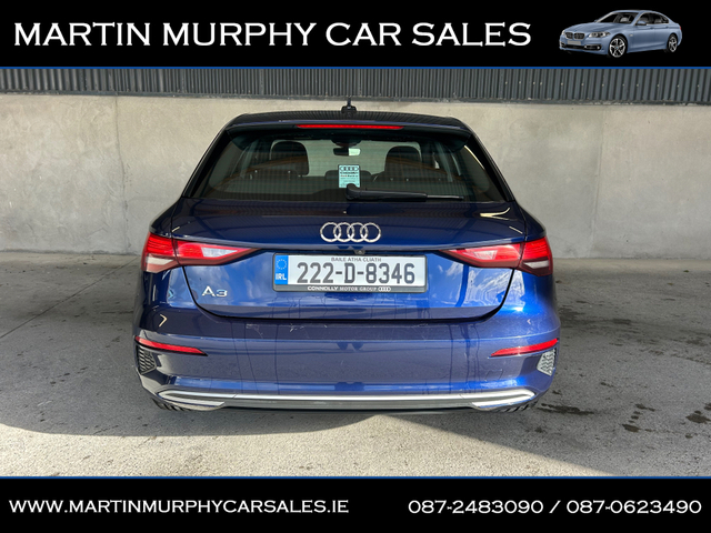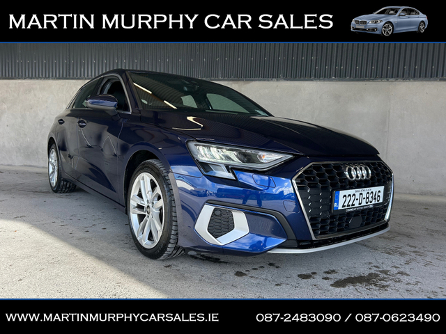2022 AUDI A3 SPORTBACK 2.0 TDI 116 BHP Finished in Navarra blue metallic One owner from new Irish supplied car Full service history - Finance available - Trade ins accepted - Dealer warranty - Xenon headlights - Reverse camera - 6 speed transmission - Air con - Cruise control - Heated seats - Push button start MARTIN MURPHY CAR SALES, KILKEARY, NORWOOD NENAGH, CO TIPPERARY Central Locking, Electric Windows, Airbag, Cruise Control, Rear Spoiler, Centre Armrest, Multi-function steering wheel, Traction Control, Metallic Paint, Parking Sensors, Bluetooth, Isofix, Apple Car Play, Android Auto, Active Safety Braking / City Brake / Collision Alert, Stop/Start Button, External Devices Connectivity, Cup holders, Remote boot/hatch/rear door release, Stability control