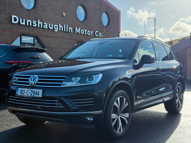 *ONLY TEN MINUTES FROM BLANCHARDSTOWN SHOPPING CENTRE* *PRICE EXCLUDES VAT - €34,950 INCLUSIVE OF VAT @23%* 2018 (182) VW Touareg 3.0 TDI V6 Auto in immaculate condition throughout. Original Irish car with an excellent service record, low kms and huge spec to include: upgraded alloy wheels, xenon headlights, front foglights, keyless entry & start, electric windows & mirrors, folding mirrors, reverse camera, full leather upholstery, heated & electric front seats with memory function, sport seats, ambient lighting, bluetooth telephone system, cruise control, touch screen media control unit, front centre armrest, climate control with A/C, leather multifunction sport steering wheel, abs, isofix, esp, multiple airbags etc. For further information, please contact Adam on 01 8017777 / 083 3983490 Vehicle can be taxed commercial or private.