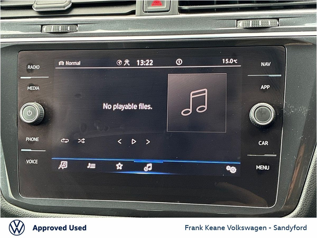 Experience complete confidence with the Frank Keane Volkswagen Optional Pre-Owned Vehicle Protection Pack — including a 24-month warranty, 3-year Return to Invoice (RTI) investment protection, and 3-year paint, glass, and upholstery protection with LifeShine. Premium cover, expertly designed to protect your vehicle and your investment. To Learn more, speak to one of our Sales Team in Frank Keane Volkswagen Sandyford today. Please contact our Sales Team today for a Personalised Video of this Car, Digital Part Exchange Valuations and Tailored Funding Options to meet your needs on 01-6546000 Here at Frank Keane Volkswagen South Dublin , we ensure all our used vehicles are prepared to the highest of standards and all used cars come with a minimum of 12 months warranty and get a 120-point multi point pre-sale service check with no expense spared to ensure owner confidence. • ABS • Driver Airbag • Passenger Airbag • Side Airbag • Child Locks • Daytime Running Lights • Flat Tyre Indicator • ISO Fix • Multiple Airbags • Side Impact Protection • Auto Handbrake • Auto Lights and Wipers • Centralised locking • Cruise Control • Hill Hold • Parking Assistance • Power Steering • Remote Central Locking • Adjustable Steering Column • Air Conditioning • Armrest • Bluetooth Phone • Climate Control • Mobile Device Interface (media-in) • Multi-Function Steering Wheel • Radio/CD/MP3 • Split Fold Rear Seats • Touchscreen Stereo • USB • Alloy Wheels • Rear Sensors • Rear View Camera • Wireless App Connect