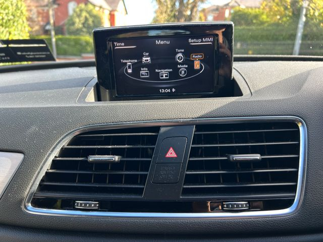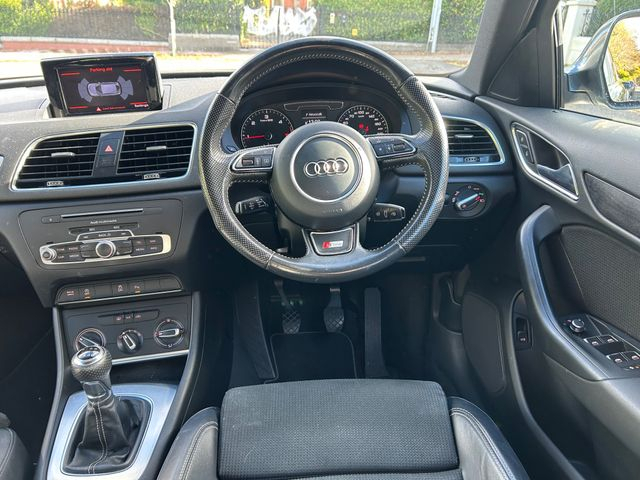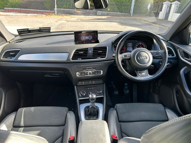 Well maintained Audi Q3 S Line presented in Monsoon grey metallic with full Alcantara black leather / cloth interior with S LINE embroidered front seats. This audi has just had 4 new tyres fitted, is tax and tested until next year, comes with 2 keys, cruise control, sat nav, electric heated wing mirrors, Audi Drive Select, 18” S Line alloys, electric boot lid with luggage cover and original audi rubber boot protecter, Audi S Line leather multifunction steering wheel, parking sensors front and rear, air conditioning, auto hold and electric hand brake and bluetooth phone compatibility. •Comprehensive warranty given. •Trade-in welcome. •Finance arranged at the most competitive rates available. •Full mechanical pre delivery inspection carried out on each vehicle in stock • NCT provided where applicable Bluetooth,Centre Armrest,Climate Control,Cruise Control,Electric Mirrors,Electric Windows,Luggage Cover,Air Conditioning,Alarm,Central Locking,Parking Sensors,Alloy Wheels,Metallic Paint,Rear Spoiler,2 Keys Available,Collision Alert,Front Parking Sensors,Hill-Start Assist,Cup Holders