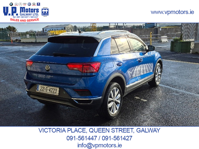 A LOW MILEAGE, HIGH SPECIFICATION,PREMIUM EDITION. FINISHED IN STUNNING, RAVENNA BLUE METALLIC. HAVING COVERED A MERE 25,000KM ! THE VEHICLE IS IN SUPERB CONDITION THROUGHOUT, AS NEW ! A GREAT SPECIFICATION ON THIS EXAMPLE, WITH VOLKSWAGEN, INNOVATIVE TECHNOLOGY, AND SAFETY SYSTEMS, SOME OF THE FEATURES INCLUDE... VIRTUAL COCKPIT. SATALITE NAVAGATION. APPLE CARPLAY. ANDROID AUTO. FRONT AND REAR DASH CAM RECORDERS. AUTOMATIC BRAKE ASSIST (ABA) FORWARD COLLISION WARNING (FCW) BLIND SPOT WARNING (BSW) REAR CROSS TRAFFIC ASSIST (RCTA) ADAPTIVE CRUISE CONTROL (ACC) REVERSE CAMERA. FRONT AND REAR PARKING ASSIST. KEYLESS ENTRY. PUSH BUTTON START. MULTIPLE ADJUSTMENT, DRIVERSEAT, WITH LUMBAR SUPPORT. PASSENGER SEAT WITH LUMBAR SUPPORT. LEATHER STEERING WHEEL, WITH MULTI-FUNCTION, AUTOMATIC TRANSMISSION. TINTED GLASS WITH UV PROTECTION. BLUETOOTH TELEPHONY. VOICE COMMAND. PARKING ASSIST SENSORS FRONT AND REAR. DYNAMIC DRIVING SETTINGS. VOLKSWAGEN FUEL-SAVING TECHNOLOGY. DUAL-ZONE CLIMATE CONTROL. AIR CONDITIONING. ELECTRICALLY FOLDING DOOR MIRRORS. HEATED DOOR MIRRORS. ELECTRIC BOOT DOOR OPERATION. AUTO HEADLIGHTS. XENON HEADLIGHTS. ADAPTIVE HEADLAMPS. AUTO RETRACTABLE HEADLAMP WASHERS. REAR LED LAMPS. ISOFIX. CENTRE ARMREST. FRONT FOG LAMPS. CORNERING LIGHS. HILL HOLD ASSIST. AUTO WIPERS. 17" CORTEZ ALLOY WHEELS IN UNMARKED CONDITION. TWIN CHROME EXHAUST. AND MORE... THE VEHICLE HAS UNDERGONE A FULL MAJOR SERVICE TO INCLUDE... NEW FULLY SYNTHETIC ENGINE OIL AND FILTER. NEW ENGINE AIR FILTER. NEW ACTIVATED CARBON FILTER. NEW WIPER BLADES. NEW BRAKE PADS. 6 MONTHS/10,000KM COMPREHENSIVE WARRANTY PACKAGE. PART EXCHANGE ON YOUR PRESENT CAR IS WELCOME. CALL SALES ON 091-561427 AND 091-561447 www.vpmotors.ie www.vanhire.ie Central Locking, Electric Windows, Airbag, Cruise Control, Fog Lamps, Privacy Glass, Centre Armrest, Multi-function steering wheel, Roof Rails, Traction Control, Metallic Paint, Parking Sensors, Bluetooth, EBD, Isofix, Apple Car Play, Android Auto, Active Safety Braking / City Brake / Collision Alert, Stop/Start Button, 2 Keys, External Devices Connectivity, Cup holders, Remote boot/hatch/rear door release, Stability control