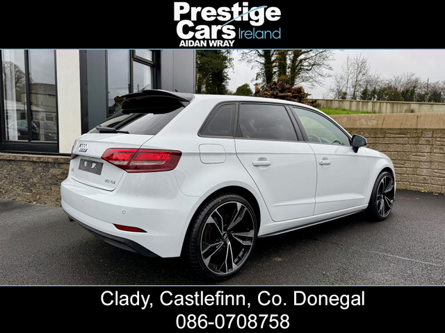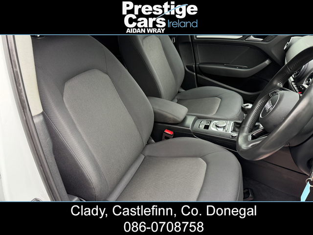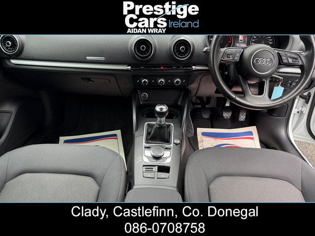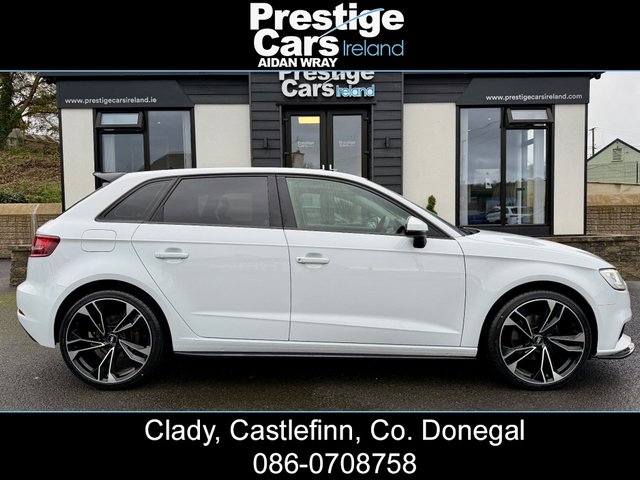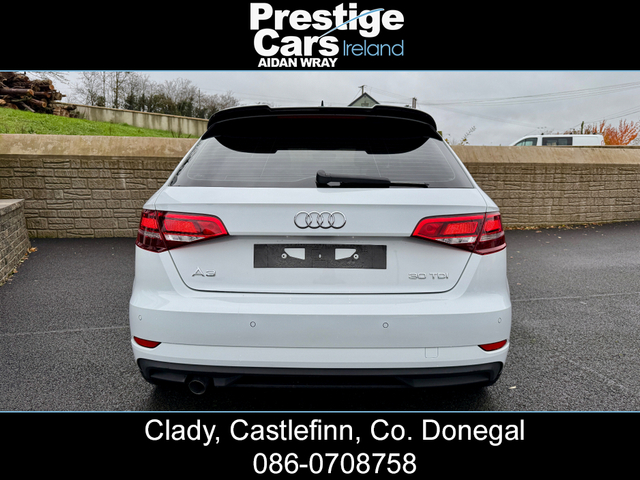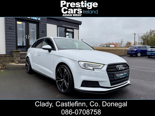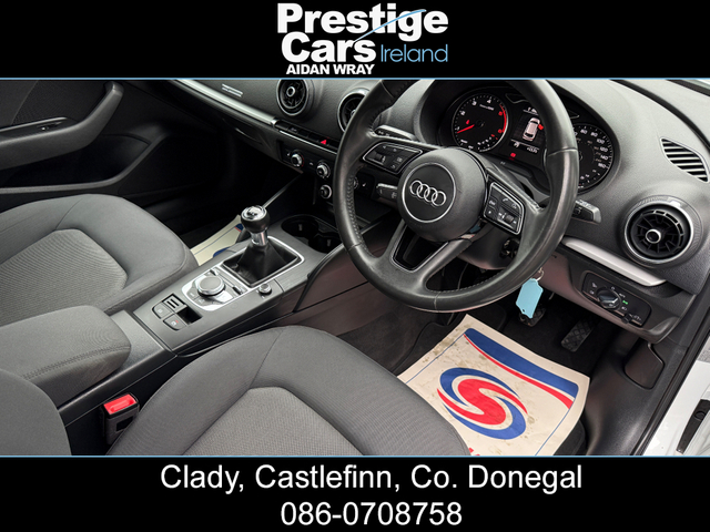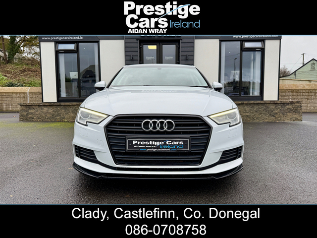 **EURO PRICE €17,650 ON IRISH REGISTRATION, REGISTERED TO YOUR COUNTY WITH NEW NCT** -IRISH ROAD TAX €200 EURO -PRICE FOR NI CUSTOMER ON NI REG 11,450 STG www.prestigecarsireland.ie (FREE DELIVERY ANYWHERE IN IRELAND) *TOP RATE ON EURO GIVEN* ***BODY KIT/WHITE/BLACK EDITION STYLING/19" ALLOY WHEELS/HEATED SEATS*** 2019 (191) AUDI A3 1.6 30 TDI SE TECHNIK 5DR HATCHBACK, BLACK EDITION STYLING, 116 BHP, 111,000 MILES WITH A FULL AUDI SERVICE HISTORY, TWO OWNERS FROM NEW, BLACK CLOTH INTERIOR, HEATED SEATS, BIG SCREEN COLOUR DISPLAY SAT-NAV, ON-BOARD COMPUTER, MULTI FUNCTIONAL WHEEL, IPOD/USB CONNECTION, BLUETOOTH, AIR CON, ELECTRIC FOLDING DOOR MIRRORS, DAB DIGITAL RADIO, HEADLIGHT WASHERS, BRAND NEW 19" ALLOY WHEEL PACKAGE,OPTIONAL EXTRA 750 STG, **GLOSS BLACK FRONT SPLITTER,SIDE SKIRTS AND REAR SPOILER**, DYNAMIC INDICATORS, XENON/LED HEADLIGHTS, LED FRONT FOG LIGHTS, REAR PRIVACY GLASS, REAR PARK SENSORS, FINISHED IN STUNNING BRIGHT WHITE, 6 SPEED MANUAL, 2 KEYS AVAILABLE & ALL PAPERWORK PRESENT, MINT CONDITION INSIDE AND OUT. ANY INSPECTION WELCOME. EXCELLENT VALUE *(CAR IS FITTED WITH A BRAND NEW 19" ALLOY WHEEL PACKAGE,OPTIONAL EXTRA 750 STG)* **ROI/NI/UK TRADE IN'S ACCEPTED @ TRADE PRICES** -CALL AIDAN ON 00447856438001 OR 0860708758 ***EXCELLENT FINANCE PACKAGES AVAILABLE TO NI/UK/ROI CUSTOMERS*** CREDIT & DEBIT CARDS ACCEPTED PRICE INCLUDES 3 MONTHS WARRANTY FULLY VALETED/DETAILED *ALL OUR STOCK IS PUT OUT TO A VERY HIGH STANDARD* ALL CARS COME FULLY SERVICED WITH NEW TIMING BELT & WATER PUMP KIT FITTED INCLUDING FULL CHECKOVER HPI PRINT OUT VIEWING AVAILABLE 7 DAYS A WEEK, OPEN LATE EVERY NIGHT PRESTIGE CARS IRELAND VIEW OUR FACEBOOK PAGE "PRESTIGE CARS IRELAND" 3 Month Warranty, Central Locking, Electric Windows, Airbag, Fog Lamps, Rear Spoiler, Centre Armrest, Multi-function steering wheel, Satellite Navigation, Traction Control, Anti-Theft System, Parking Sensors, Bluetooth, EBD, Isofix, Active Safety Braking / City Brake / Collision Alert, Stop/Start Button, 2 Keys, External Devices Connectivity, Cup holders, Remote boot/hatch/rear door release, Stability control