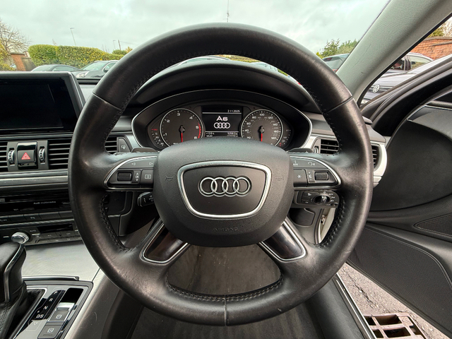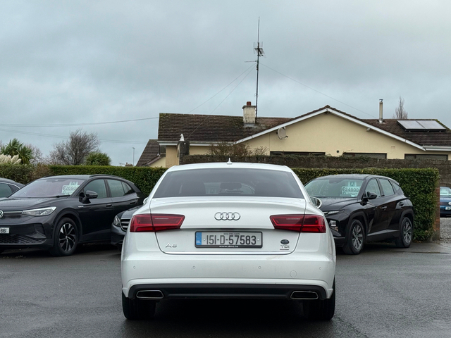 *ONLY TEN MINUTES FROM BLANCHARDSTOWN SHOPPING CENTRE* 2015 Audi A6 2.0 TDI Auto SE Ultra 190BHP in immaculate condition throughout with an excellent service record and huge spec to include: upgraded alloy wheels, folding mirrors, parking sensors, leather upholstery, heated front seats, climate control, cruise control, sport seats, auto lights & wipers, bluetooth telephone system, hill hold assist, media control unit, front centre armrest, abs, esp, isofix, multiple airbags etc. For further information, please contact Adam on 01 8017777 / 083 3983490