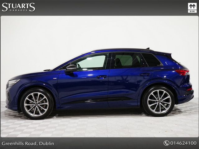 Q4 E-TRON 45 EDITION 1 - S/LINE TECH PACK • NAVARRA BLUE METALLIC WITH FULL BLACK LEATHER • POWER CLOSING BOOT • HEADS UP DISPLAY • PREMIUM SONOS SOUND SYSTEM • HEATED SEATS • APPLE CARPLAY / ANDROID AUTO • FLAT TOP AND BOTTOM STEERING WHEEL • BLACK ROOF RAILS • 20" 5-V-SPOKE POLYGON ALLOYS • BLACK EXTERIOR MIRRORS • FULL PAINT FINISH • S LINE TWIN LEATHER PACK • DIGITAL MATRIX HEADLIGHTS • S LINE EXTERIOR PACK • AMBIENT LIGHTING PACK PLUS • DYNAMIC PACK • COMFORT & SOUND PACK • TECHNOLOGY PACK LIGHT • MANUFACTURER CLAIMED RANGE OF UP TO 550KM • At Stuarts Garages, we specialise in High Quality Premium Pre-Owned Cars. • This particular Q4 45 EDITION comes with a comprehensive warranty • 12 months AA Roadside Assist. • Attractive finance options are available upon request. • Call today for further information or to arrange a test drive. • Stuart’s Garages, Trading since 1946
