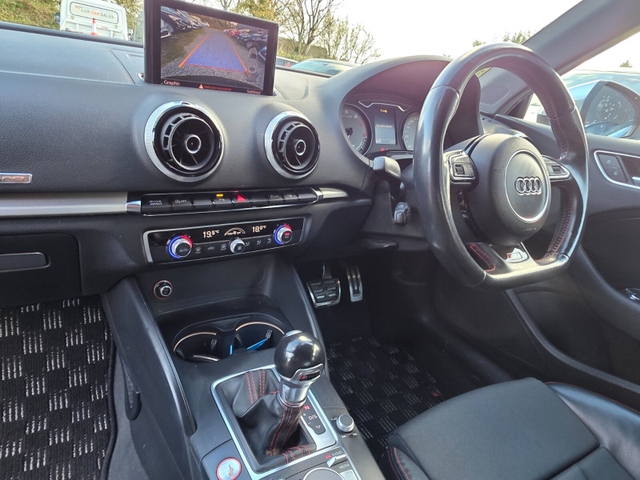 2015 AUDI S3 2.0 TFSI QUATTRO AUTOMATIC MODEL IN PRISTINE CONDITION COMES WITH: - NEW NCT TILL 10/26 - HALF LEATHER INTERIOR - BLUETOOTH - CRUISE CONTROL - REVERSE CAMERA - PARKING SENSORS - ELECTRIC FOLDING MIRRORS - START/STOP TECHNOLOGY Note that this car will come fully valeted and with a 3 month warranty as standard or an option to extend. All our cars come with a detailed history report and fully serviced or health checked by our in-house mechanic and a valid NCT. Trade ins are most welcome and can be used as deposit also Delivery can be arranged throughout the country. Finance packages tailored to suit each individual.
