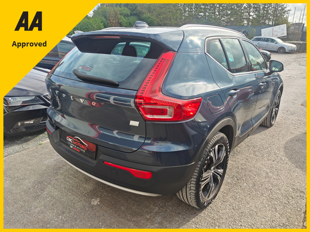 Price €32,950 Here is an example of a 2021 Volvo XC40 PHEV Inscription we sourced for a customer with 85,000 Kilometers . We can source similar jeeps in your desired colour, mileage,year,budget & price. We can source XC40 2020/2021/2022/2023/2024 XC60 2019/2020/2021/2022/2023/2024/2035 XC90 2019/2020/2021/2022/2023/2024/2025 S60 S90 V60 V90 CX30 12 Month Warranty, Air Conditioning, Central Locking, Electric Windows, Airbag, Alarm, Alloy Wheels, Cruise Control, Electric Mirrors, Fog Lamps, Immobiliser, Leather Upholstery, Full Leather, Automatic Wipers, Centre Armrest, Luggage Cover, Multi-function steering wheel, Climate Control, Satellite Navigation, Traction Control, Metallic Paint, Multiple Air Bags, Parking Sensors, Bluetooth, Electronic handbrake, Isofix, Roadside assistance, Heated Front Seats, Reversing Camera, Active Safety Braking / City Brake / Collision Alert, Stop/Start Button, Driver Fatigue Warning, Drive Mode Selector, Dual Zone Climate Control, Daytime Running Lights, Main Dealer Service History