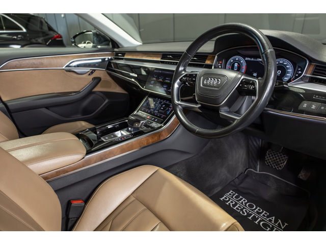 2018 (181) Audi A8 3.0 TDI Quattro 286hp Finished in Black with Ivory Leather Interior - 21" Alloy Wheels - Adaptive Air Suspension - Keyless Entry - Soft Close Doors - Heads Up Display - Heated, Electric, Folding Mirrors - Heated, Electric, Memory Front Seats with Lumbar Support - Leather Multifunctional Steering Wheel with Paddle Shift - Electrically Adjustable Steering Column - Adaptive Cruise Control - Virtual Cockpit - Wide Touchscreen Infotainment System - Satellite Navigation - Bluetooth & USB Connectivity - Apple CarPlay & Android Auto - Reverse Camera - Front & Rear Parking Sensors - Air Conditioning - Dual Zone Climate Control - Selectable Drive Mode - Electronic Handbrake - Auto Hold - Auto Stop/Start Function - Privacy Glass - Auto Lights - LED Headlights - LED Daytime Running Lights - LED Tail Lights - Auto Wipers - Motorised Tailgate - Folding Rear Seats - Isofix - Statutory Emergency Call System Warranty inclusive (options for extended warranty available) Finance available Trade ins are considered Indoor viewing in Naas, Co. Kildare Call Aaron on 087-0356815 or Bob on 087-3855810 for more information or to arrange a test drive. Air conditioning, Climate control, Dual zone climate control, Armrest, Keyless entry, Electrically adjustable seats, Electric boot, Electric side mirrors, Electric windows, Electric handbrake, Heated seats, Lumbar support, Multi-function steering wheel, Rain sensor, Spare tyre, Gear shift paddles, Bluetooth, 12v power outlet, Radio, Touch screen display, USB connection (front), Wifi, Adaptive cruise control, Cruise control, Hill hold assist, Navigation system, Parking camera, Front parking sensors, Rear parking sensors, Remote boot release, Speed limiter, Start-stop system, Traffic sign recognition, Voice control, Digital instrument panel, Alloy wheels, Leather interior, Leather steering wheel, Tinted windows, Adaptive headlights, Ambient lighting, Auto lights (dusk sensor), Daytime running lights, Fog lights, High beam assist, LED headlights, ABS, Lane change assist, Anti collision system, Alarm system, Emergency brake assist, Central locking, Driver-side airbag, Immobilizer, Isofix, Lane departure warning, Tyre pressure monitor, Passenger-side airbag, Seat belt warning, Side airbag, Stability control, Traction control, Air suspension, 4WD