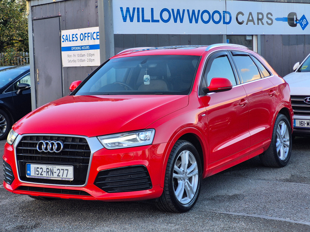 *FINANCE AVAILABLE * Audi Q3 2.0tdi s-line. 6 speed manual transmission. 185k / 115k miles. Good service history. Finished in progressive red with contrasting half leather s-line upholstery. Just passed NCT 12/2026. Cheap annual road tax €270. S-line model which includes Remote locking/2keys. Electric windows x4. Electric mirrors. Cd/mp3/usb/aux/Bluetooth. Cruise control/multifunction steering wheel. Climate control/Air-con. Auto light's and wipers. Daytime running led's. Front&rear parking sensors. Panoramic sunroof. Full s-line body styling. Original s-line Alloy wheels. Privacy glass with wind deflectors. Electric tailgate. PRICE INCLUDES Full service. Full valet. 3 month's engine and gearbox warranty. VIEWING BY APPOINTMENT. Willowwood cars Balmoral Estate Navan Co.meath C15e439 www.willowwoodcars.ie usedcars Navan meath willowwoodcars audiq3 sline Central Locking, Electric Windows, Airbag, Cruise Control, Rear Spoiler, Centre Armrest, Multi-function steering wheel, Roof Rails, Traction Control, Metallic Paint, Parking Sensors, Bluetooth, EBD, Isofix, Active Safety Braking / City Brake / Collision Alert, Stop/Start Button, External Devices Connectivity, Cup holders, Remote boot/hatch/rear door release, Stability control