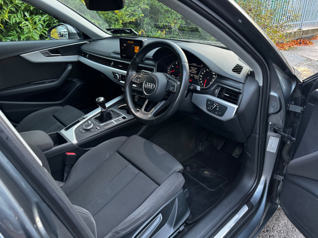 Welcome to Divine Motors Introducing this lovely example Audi A4 -SE Ultra Ss model -2.0 Tdi -6 Speed manual transmission -Tax & NCT -19” Alloy wheels -Xenon headlights -LED Daytime Running Lights -Multifunctional steering wheel -Auto lights -Auto wipers -Cruise control -Finance available -Extended warranty available -Nationwide delivery available To arrange a viewing please contact Adam on 0873333919. Located in Naas, W91C1P1. Thanks, Divine Motors. Air conditioning, Climate control, Armrest, Keyless entry, Electrically adjustable seats, Electric side mirrors, Electric windows, Electric handbrake, Lumbar support, Multi-function steering wheel, Spare tyre, Split rear seats, Bluetooth, 12v power outlet, Radio, USB connection (front), Wifi, Cruise control, Navigation system, Rear parking sensors, Remote boot release, Speed limiter, Start-stop system, Voice control, Alloy wheels, Leather interior, Leather steering wheel, Tinted windows, Auto lights (dusk sensor), Bi-xenon headlights, Daytime running lights, Fog lights, ABS, Anti collision system, Emergency brake assist, Central locking, Remote central locking, Driver-side airbag, Immobilizer, Isofix, Tyre pressure monitor, Passenger-side airbag, Seat belt warning, Side airbag, Stability control, Traction control, Sport suspension