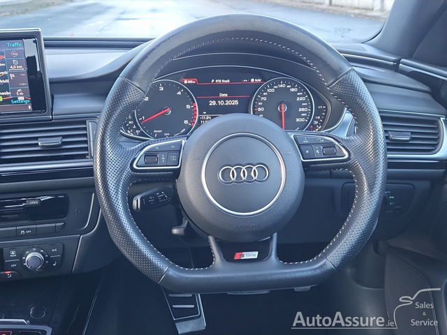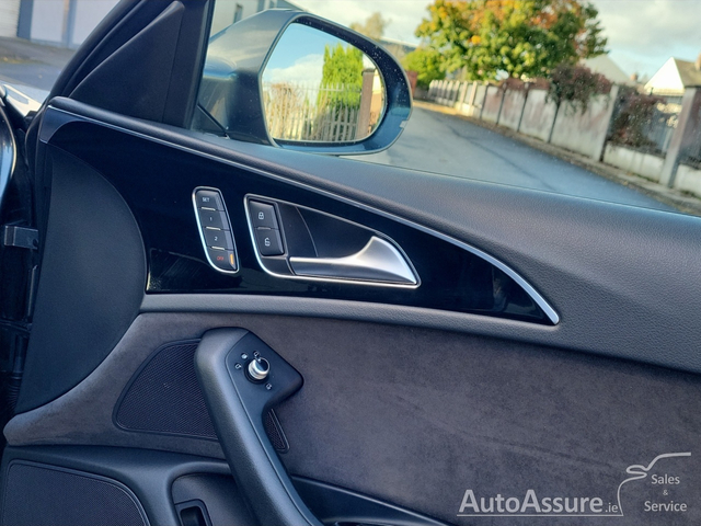 *** Buy this car and get a 7 day free stay for you and a friend in Benalmadena or Tenerife *** Just traded in against our Volkswagen Golf R. Some of you will love the modifications to this car, some of you will hate them. Not done by us, but the previous owner, this Black Edition S-Line A6 finished in Daytona Grey is a gorgeous car in it's own right. The previous owner has added a full Maxton Design Kit to the car, upgraded it with a set of 20'' Veeman Alloys, modified the exhaust to have twin pipes replicating the RS6. Aside from the cosmetic modifications, the car is a really nice drive. Full Leather S-Line interior with flat bottom leather steering wheel, memory seats, Climate control, cruise control, Sat Nav, bluetooth phone and audio, rear privacy glass, heated seats and much more. We have just carried out a full service and the car will carry a new NCT. The 2.0Tdi Ultra offers superb performance with 190BHP but also can be quite economical returning in excess of 50MPG. Trade in welcome and finance available on this car. Contact Eoin on 087-1522599 to arrange a test drive - buy with confidence from your award winning SIMI dealer - www.autoassure.ie Central Locking, Electric Windows, Airbag, Privacy Glass, Centre Armrest, Multi-function steering wheel, Satellite Navigation, Traction Control, Metallic Paint, Anti-Theft System, Parking Sensors, Bluetooth, EBD, Isofix, Active Safety Braking / City Brake / Collision Alert, Stop/Start Button, External Devices Connectivity, Cup holders, Remote boot/hatch/rear door release, Stability control