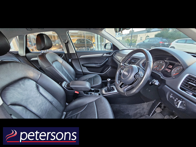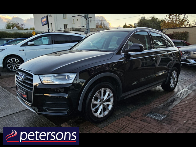 AUDI Q3 2.0 TDI SE 4DR, FULL BLACK LEATHER INTERIOR, HEATED SEATS, CRUISE CONTROL, CLIMATE CONTROL, AIR CONDITIONING, POP-UP DISPLAY, BLUETOOTH, CD PLAYER, MULTIFUNCTION STEERING WHEEL, FRONT AND REAR PARKING SENSORS, STOP/START BUTTON, ELECTRONIC HANDBRAKE, ELECTRONIC WINDOWS AND MIRRORS, ROOF RAILS, LUGGAGE COVER, REMOTE CENTRAL LOCKING, ALLOY WHEELS. WELCOME TO PETERSONS - PETERSONS HAVE BEEN SELLING CARS SINCE 1970s FROM OUR LOCATION ON TIVOLI ROAD IN DUN LAOGHAIRE, WITH OUR VAST EXPERIENCE AND KNOWLEDGE ALL OUR CARS GO THROUGH A METICULOUS INSPECTION PROCESS, WE OFFER A VAST RANGE OF PRE-OWNED VEHICLES THAT ARE CHOSEN WITH OUR CUSTOMERS NEEDS IN MIND, CONTACT ANDY OR PATRICK @ SALES ON 01-2806917 TO ARRANGE A TEST DRIVE. Air Conditioning, Central Locking, CD Player, Electric Windows, Airbag, Alloy Wheels, Cruise Control, Electric Mirrors, Immobiliser, Full Leather, Heated Seats, Automatic Lights, Centre Armrest, Luggage Cover, Multi-function steering wheel, Roof Rails, Climate Control, Traction Control, Metallic Paint, Multiple Air Bags, Anti-Theft System, Parking Sensors, Bluetooth, Remote Central Locking, EBD, Electronic handbrake, Folding rear seats, Isofix, History Checked, Finance Checked, Front Parking Sensors, Active Safety Braking / City Brake / Collision Alert, Stop/Start Button, Drive Mode Selector, Daytime Running Lights, External Devices Connectivity, Cup holders, Stability control