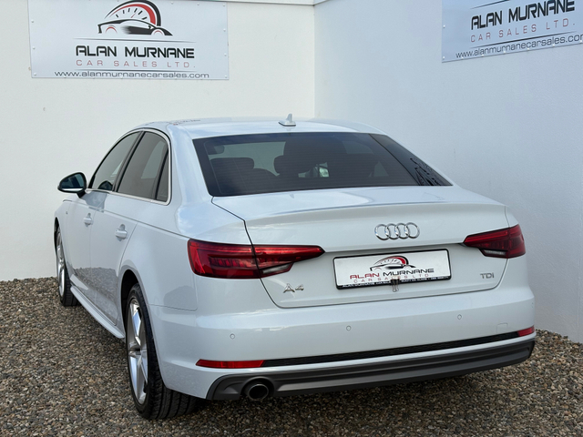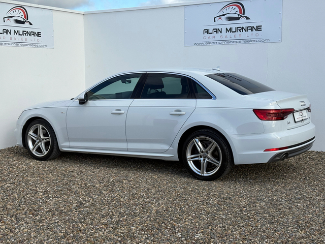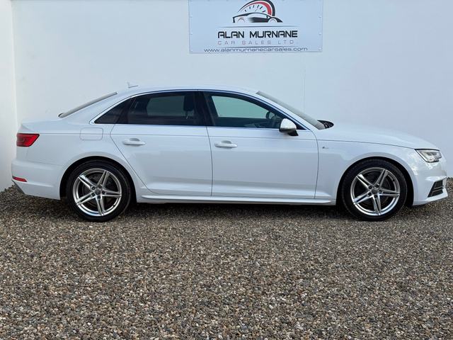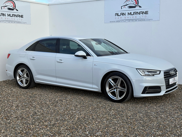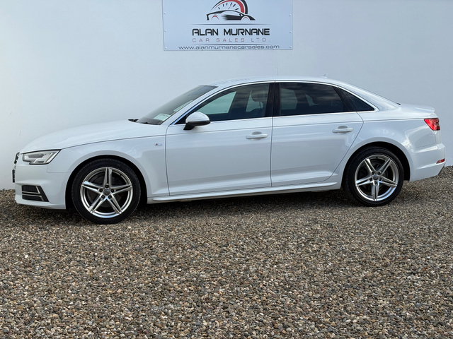 Audi A4 S-Line 2.0 TDI(2016) €21,950 JUST 27,749 MILES Will not find another 2016 A4 S-LINE with this milage and condition Finance arranged (subject to approval) apply on our website alanmurnanecarsales.com Nationwide delivery arranged Watsapp video of vehicle available on request To avoid disappointment please book an appointment 1hr in advance prior to viewing this vehicle as stock is changing on daily basis 3 month warranty (extended warranty available) Full Cartell History report Service history SOLD WITH 2 YEARS NCT Same owner since 2016 2 keys Flawless car through out Must be seen to be appreciated Getting very hard to come by in this condition and milage Loaded with every possible extra Genuine S-Line Alloy wheels LED Day time running lights Xenon head lights Front and rear parking sensors Parking assist Black roof cloth Black valcona Half leather S-line interior 6 speed transmission Electric windows Electric mirrors Satellite navigation Cruise control Multifunction leather steering wheel On board computer Bluetooth auxiliary port Keyless entry Push button start Centre armrest front and rear Dual heating controls Automatic wipers Isofix Rear privacy glass Genuine Audi floor mats Fully valeted and serviced through out Nationwide delivery arranged After hours viewings by appointment only Central Locking, CD Player, Electric Windows, Airbag, Cruise Control, Centre Armrest, Multi-function steering wheel, Satellite Navigation, Traction Control, Metallic Paint, Anti-Theft System, Parking Sensors, Bluetooth, EBD, Isofix, Active Safety Braking / City Brake / Collision Alert, Stop/Start Button, External Devices Connectivity, Cup holders, Remote boot/hatch/rear door release, Stability control