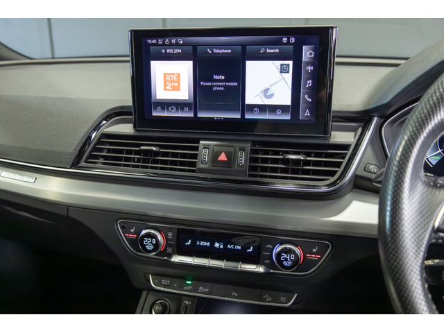 2021 (212) Audi Q5 50 TFSI-E S-Line Quattro 17.9 kWh Battery with an Electric-Only Range of up to 61 km Finished in Mythos Black Metallic with Black Interior - 19" Alloy Wheels - Heated, Electric, Folding Mirrors - Heated, Front Seats with Lumbar Support - Leather Multifunctional Steering Wheel with Paddle Shift - Cruise Control - Virtual Cockpit - Wide Touchscreen Infotainment System - Satellite Navigation - Bluetooth &USB Connectivity - Apple CarPlay & Android Auto - Reverse Camera - Front & Rear Parking Sensors - Air Conditioning - 3 Zone Climate Control - Selectable Drive Mode - Electronic Handbrake - Auto Hold - Privacy Glass - Auto Lights - LED Headlights - LED Daytime Running Lights - LED Tail Lights - Auto Wipers - Motorised Tailgate - Folding Rear Seats - Isofix - Statutory Emergency Call System Warranty inclusive (options for extended warranty available) Finance available Trade ins are considered Indoor viewing in Naas, Co. Kildare Call Aaron on 087-0356815 or Bob on 087-3855810 for more information or to arrange a test drive. Air conditioning, Climate control, Dual zone climate control, Multi zone climate control, Armrest, Keyless entry, Electric boot, Electric side mirrors, Electric windows, Electric handbrake, Heated seats, Lumbar support, Multi-function steering wheel, Rain sensor, Split rear seats, Gear shift paddles, Android Auto, Apple CarPlay, Bluetooth, MP3 compatible, 12v power outlet, Radio, Touch screen display, USB connection (front), Cruise control, Hill hold assist, Parking camera, Front parking sensors, Rear parking sensors, Remote boot release, Roof rails, Speed limiter, Start-stop system, Voice control, Parking assistance, Alloy wheels, Leather steering wheel, Spoiler, Sports seats, Ambient lighting, Auto lights (dusk sensor), Daytime running lights, Fog lights, LED headlights, ABS, Anti collision system, Emergency brake assist, Central locking, Remote central locking, Driver-side airbag, Immobilizer, Isofix, Tyre pressure monitor, Passenger-side airbag, Seat belt warning, Side airbag, Stability control, Traction control, Emergency tyre repair kit, 4WD, Sport suspension