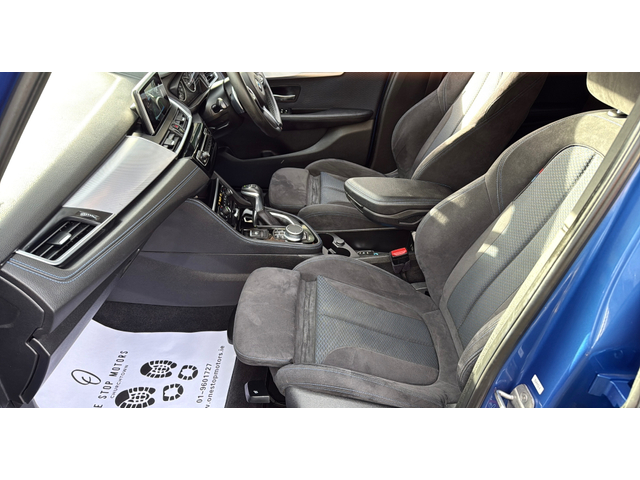 Absolutely Fabulous 2017 BMW 218d GRAN TOURER 2.0L Diesel 7SEATS MSPORT in this fabulous estroil blue colour AUTOMATIC with only 84,492 kms. This vehicle is in as new condition and is not to be missed. Features include reverse camera, heads-up display, electric and memory seats, digital dash, adaptive cruise control, rear privacy window glass, keyless entry, auto park pilot, original M-SPORT Alloys, and 7SEATS MSPORT. All 7 seats are fully adjustable, and the interior is stunning with a full alacantara original MSPORT design. LED lights, including daytime running lights, HID lights, and auto lights, complete the look. **THIS VEHICLE MUST BE SEEN!** Introducing Our Stunning New Arrival at One Stop Motors Churchtown ! Were thrilled to showcase this incredible vehicle, now available at One Stop Motors Churchtown. Described only as brand new, this car sets the standard for excellence and quality. This exceptional vehicle comes with A brand new two-year NCT, if applicable. Full servicing completed for your peace of mind. AA approval, ensuring it meets the highest safety standards. A 12-month warranty for worry-free driving. As an AA-approved and SIMI-approved dealership, were proud to be an award-winning company of 2024 and one of the highest-rated dealerships on Google in Ireland. This vehicle boasts a superb spec from top to bottom, as highlighted in the stunning photos captured by our marketing team. Dont miss out! For more information or to arrange a viewing, give us a call today at 01-9601727 . Experience the One Stop Motors difference!
