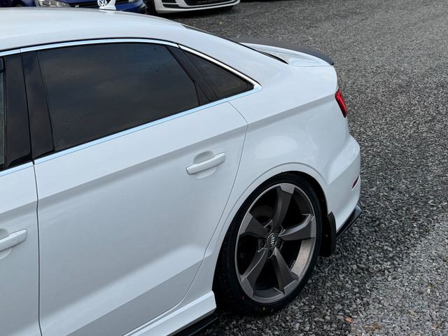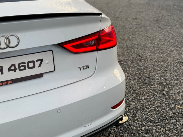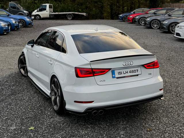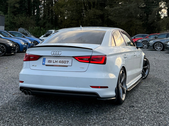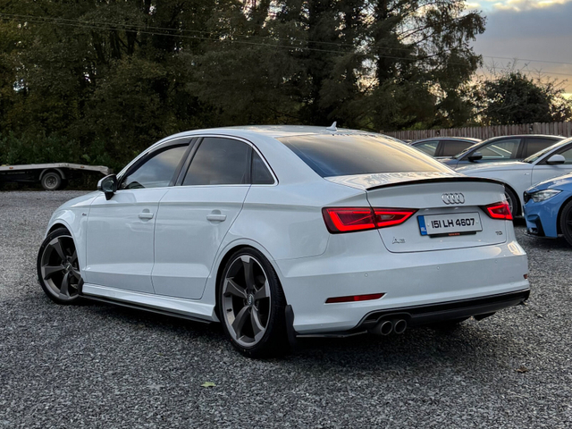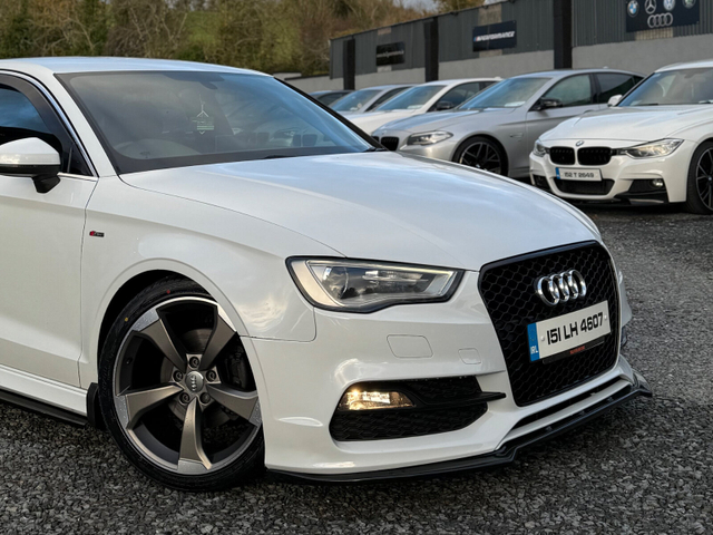 AUDI A3 SALOON S-LINE - PEARL WHITE - 2.0 DIESEL 150BHP AUTO - 2015 ?105,000 miles ?New NCT 10/26 ?TAX €200 per year ?Just serviced ?3 months warranty ?Finance available - Brand new 18inch TTRS alloys and tyres just fitted - Gloss black front lip - Gloss black side skirts - Gloss black rear bumper spats - Gloss black boot spoiler - Rear windows tinted - Parking sensors - Gloss black honeycomb front grill - Xenon headlights - LED DRLs - LED taillights - Fog lights - Half leather bucket seats - Black roof cloth - Flat bottom Multifunction steering wheel - Automatic S-Tronic gearbox - Flappy paddle shifters - Sports mode - Dual climate control - Air conditioning - Pop up radio display - Bluetooth - Sat nav - Onboard computer - Stop start - Central locking - 2 original keys Priced to sell at €16,999! Location Tullycoe/stradone Co.Cavan? (Viewings are by appointment only) Call or text if you are interested ? (0834138367) Trade ins are welcome at trade prices For trade in valuation WhatsApp 0834138367 Go check out our instagram page TullycoeMotors Air conditioning, Armrest, Keyless entry, Electric side mirrors, Electric windows, Electric handbrake, Multi-function steering wheel, Spare tyre, Bluetooth, CD, 12v power outlet, Radio, USB connection (front), Cruise control, Rear parking sensors, Remote boot release, Start-stop system, Alloy wheels, Leather steering wheel, Sports seats, Tinted windows, Bi-xenon headlights, Daytime running lights, ABS, Anti collision system, Emergency brake assist, Central locking, Remote central locking, Driver-side airbag, Immobilizer, Isofix, Tyre pressure monitor, Passenger-side airbag, Seat belt warning, Side airbag, Stability control, Traction control, Sport suspension