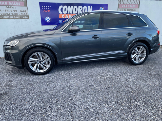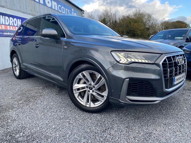 2021 - 211 REG AUDI Q7 3.0 55 TFSI E S-LINE 376BHP AUTO QUATTRO,, 2 KEYS, FULL LEATHER INTERIOR,HEATED SEAT,SAT NAV, PARKING SENSORS,PRIVACY GLASS,SOLD FULLY SERVICED WITH NEW NCT,PRICE INCLUDES VRT AND WARRANTY !! FINANCE ARRANGED PROMPT DECISION !! FULL SPEC SUV IN EXCELLENT CONDITION IN SIDE AND OUT,CALL 0599147619 TO ARRNAGE A VIEWING AND A TEST DRIVE,SUITABLE TRADE IN TAKEN . 50,950 TRADE IN PRICE. Central Locking, Electric Windows, Airbag, Rear Spoiler, Privacy Glass, Centre Armrest, Multi-function steering wheel, Roof Rails, Satellite Navigation, Traction Control, Metallic Paint, Anti-Theft System, Parking Sensors, Bluetooth, EBD, Isofix, Active Safety Braking / City Brake / Collision Alert, Stop/Start Button, External Devices Connectivity, Cup holders, Remote boot/hatch/rear door release, Stability control