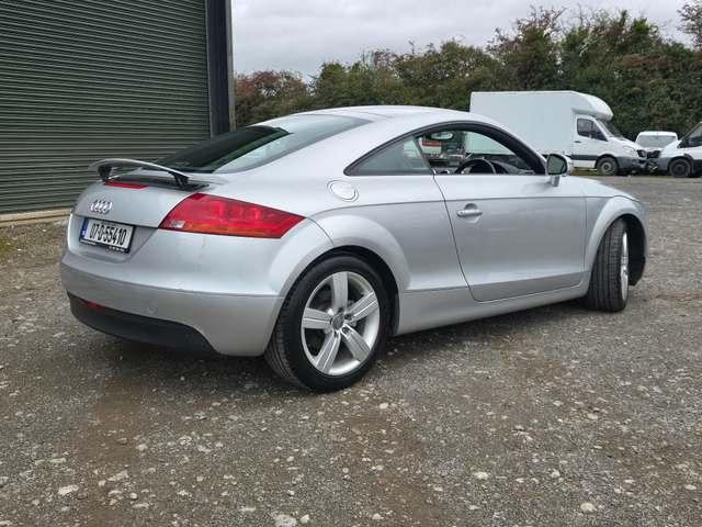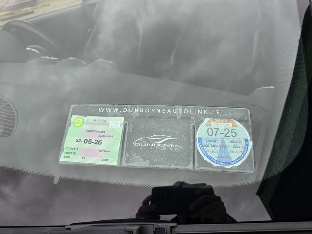 Super condition 2007 Audi TT 2.0Tfsi 6 speed manual Sport 2 door coupe finished in Silver metallic with contrasting black leather and alcantara interior and black carpets. Only 103,000kms or 64,000miles on the clock. 1 owner from new. Just passed its Nct until 22-05-2026. Irish car from new. Great driving car with no issues. Comes fully serviced and has good tyres all round. Spec includes elec windows and mirrors, air con, remote central locking, cd player, front spots, traction control, elec rear spoiler and loads more. Lovely example, some age related marks on the body but overall a clean car. Viewing is highly recommended. Available for viewing 6 days a week Monday-Saturday strictly by appointment only. Please call for more info. Central Locking, Electric Windows, Airbag, Fog Lamps, Immobiliser, Rear Spoiler, Traction Control, Anti-Theft System, EBD, Isofix, Active Safety Braking / City Brake / Collision Alert, Cup holders, Remote boot/hatch/rear door release, Stability control