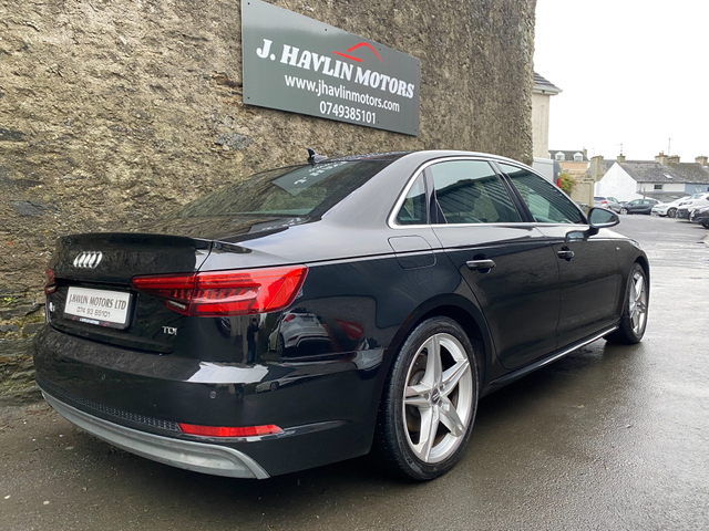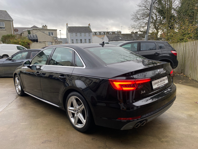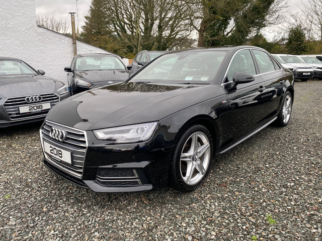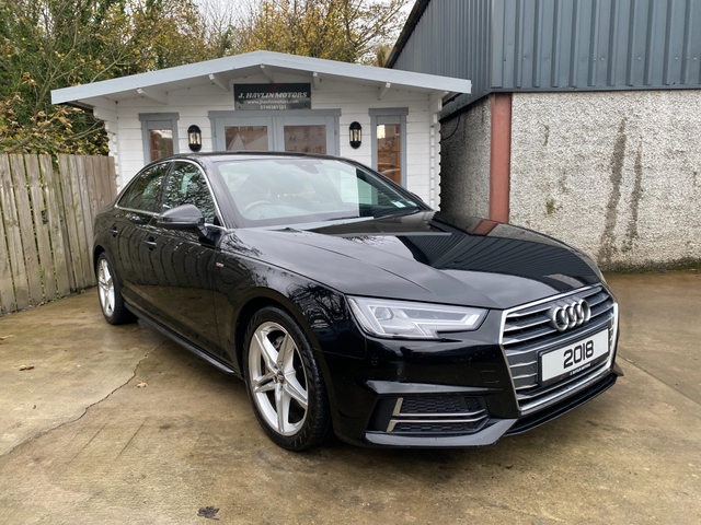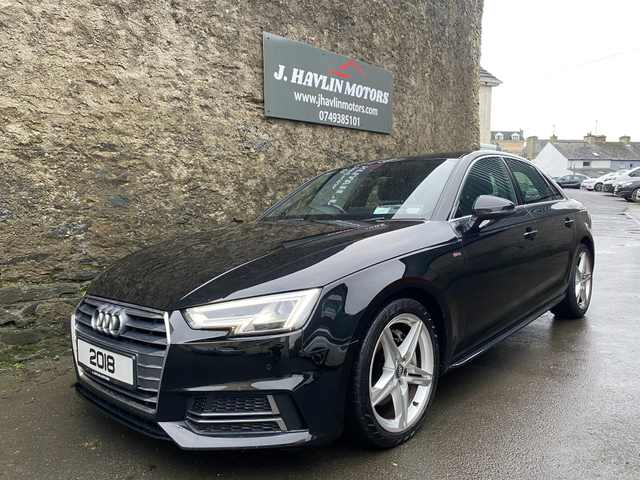 Feb 2018 Audi A4 S-Line 190 Auto Just arrived, awaiting prep! Will come with a new two year NCT Two keys 12 months AA roadside assist/recovery motorcheck.ie printout Comes fully serviced along with a new water pump and timing belt and a 6 Month Warranty Nationwide delivery €149. Apply for finance on our website - jhavlinmotors.com Contact Colum on 074 93 85101. Whatsapp 087 767 4 767 Spec includes 6 Month Warranty, Air Conditioning, Central Locking, Electric Windows, Airbag, Alloy Wheels, Cruise Control, Electric Mirrors, Immobiliser, Half Leather, Centre Armrest, Multi-function steering wheel, Climate Control, Satellite Navigation, Traction Control, Metallic Paint, Multiple Air Bags, Sports Suspension, Side Impact Protection, Parking Sensors, Bluetooth, Remote Central Locking, EBD, Electronic handbrake, Six speed transmission, Isofix, History Checked, Finance Checked, Apple Car Play, Android Auto, Active Safety Braking / City Brake / Collision Alert, Stop/Start Button, Drive Mode Selector, Daytime Running Lights, 2 Keys, External Devices Connectivity, Cup holders, Remote boot/hatch/rear door release, Stability control
