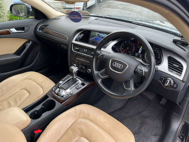 STOCK NUMBER 17411 JUST ARRIVED!! This AUDI A4 AVANT ESTATE 2.0 PETROL AUTOMATIC... In stunning condition inside and out.. A fantastic car to drive.. It comes with a huge spec including.. Call Mark for more info on Ph 083 303 6593 or email [email protected] - Full Leather - Heated Seats - Full Electric Front Seats - Reverse Camera - Parking Sensors - Bluetooth - Power Tailgate - Alloys - Multi Functional Steering Wheel - Electric Windows - Air Con **NEW NCT INCLUDED** Here at Evra Motors we have a friendly knowledgeable sales team with over 20 years experience in the business. We are proud to be an AA Approved dealer with peace of mind as standard. We aim to stock a wide range of over 300 carefully selected premium AA Approved used cars all sourced directly from main dealerships here in Ireland. We aim to supply all our cars at the most competitive prices in the country. Extended warranty available on certain makes and models. Delivery can be arranged throughout the country. Each of our retail cars comes with a detailed history report and fully serviced or health checked by our in house service team of mechanics, a valid NCT will be provided and every car will be valeted prior to collection. Tailored finance packages available. We are open 6 days a week. For more information on our cars please contact Mark on Ph 083 303 6593 or email [email protected] Due to a high turnover in stock we recommend that you contact our sales team to make sure the car is still available and to make an appointment.
